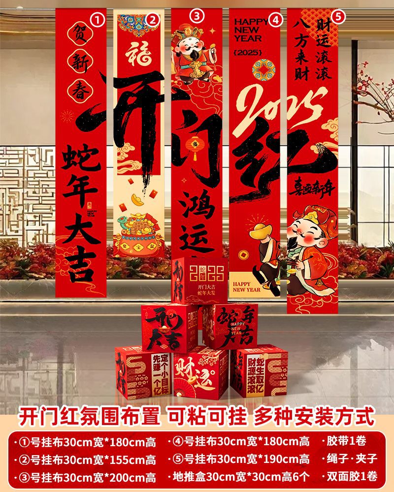 • [걸이천 + 상자] 뱀의 해에 빨간 걸이천 상자 A ⭐ 전체 레이아웃 도구 세트 제공
