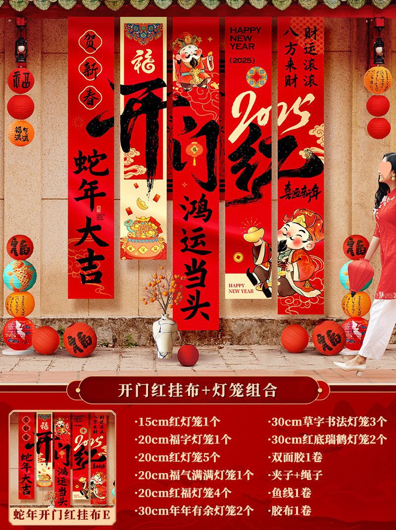 • [랜턴+걸이천] 뱀의 해에 빨간 걸이천 E1⭐전체 레이아웃 도구 세트 제공