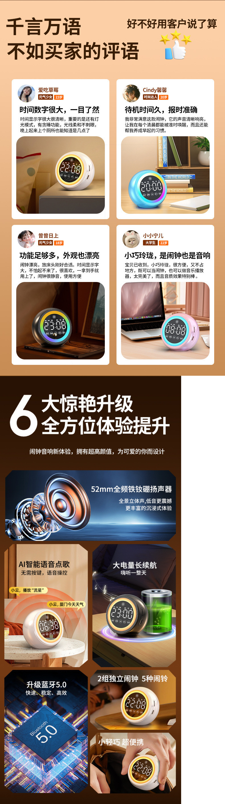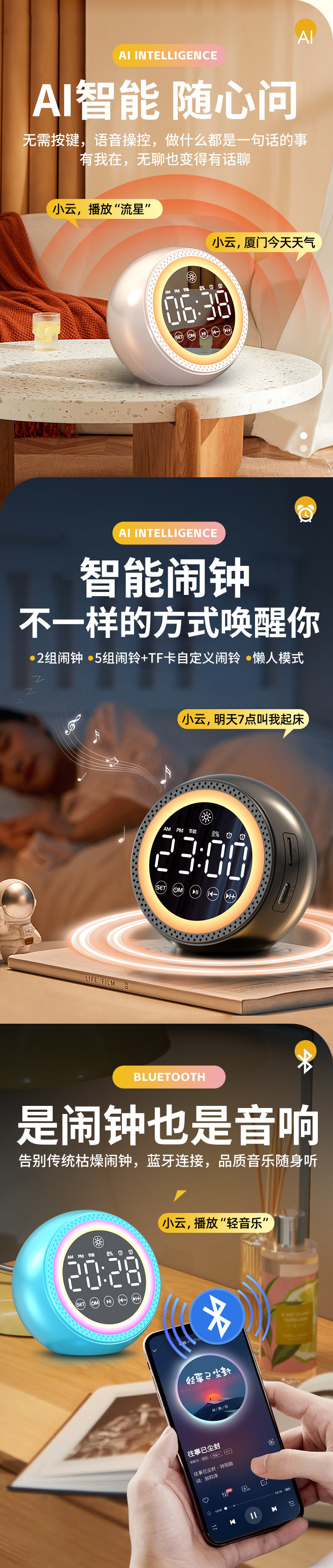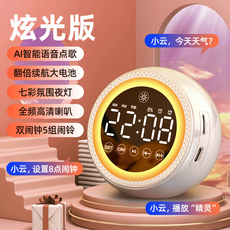 다기능 AI 지능형 음성 알람 시계 학생 전용 블루투스 스피커 서브 우퍼 무선 원격 경보 작은 스테레오