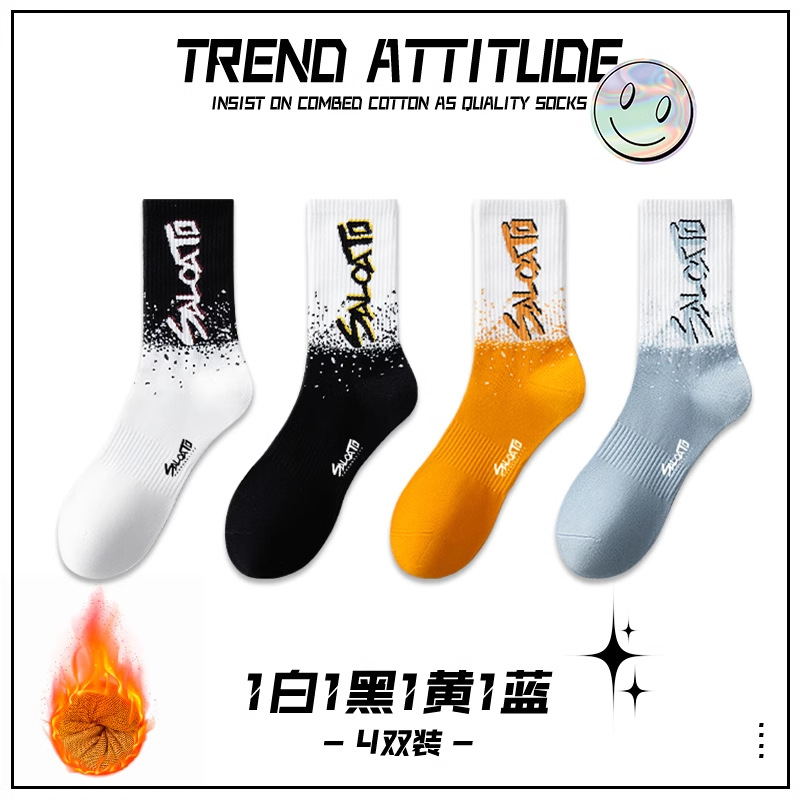 [무료 배송] 긴 양말 소년 중반 배럴 가을과 겨울 면화 100% 기모 두꺼운 따뜻한 겨울 테리 그린스토어 가기