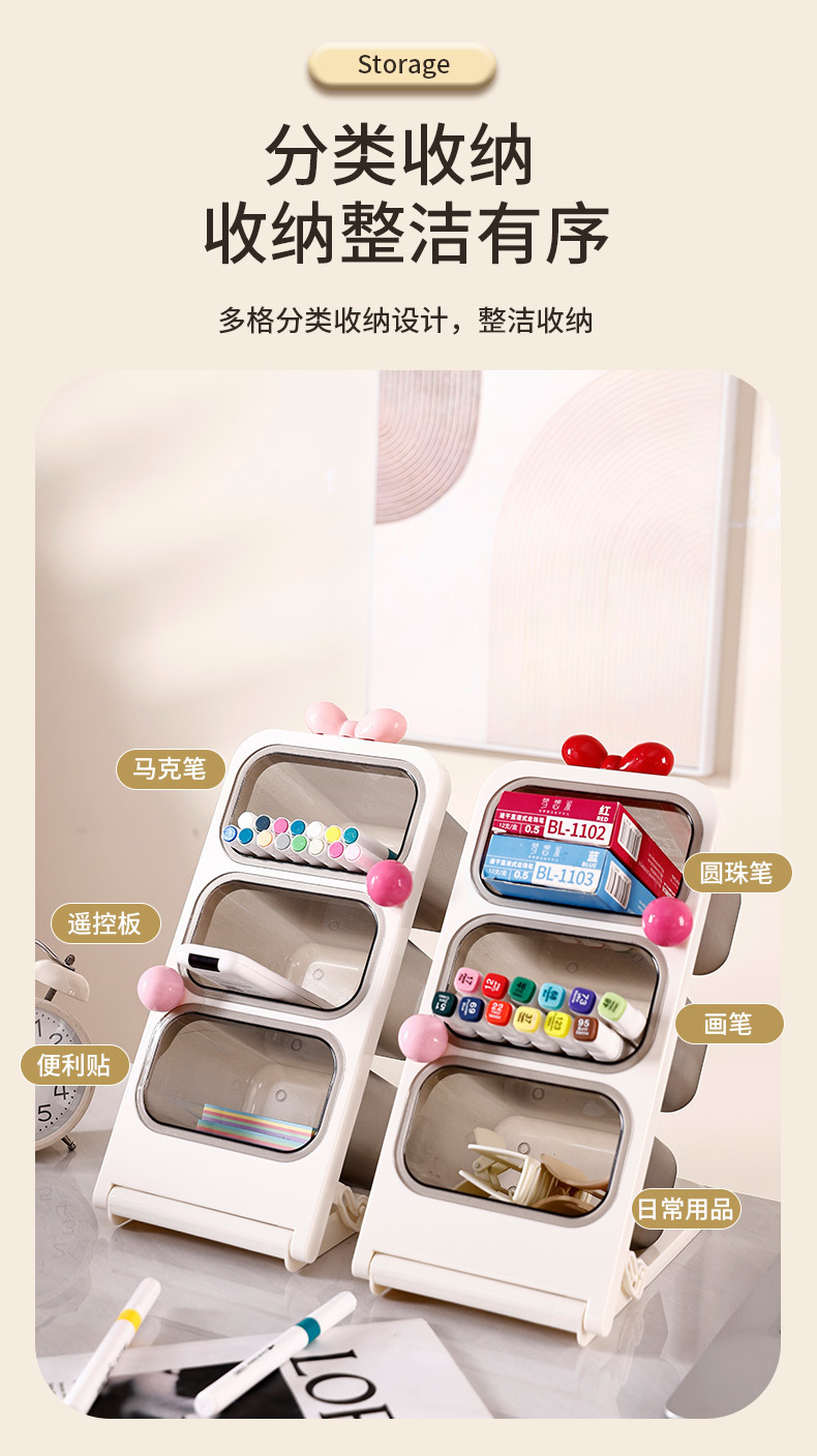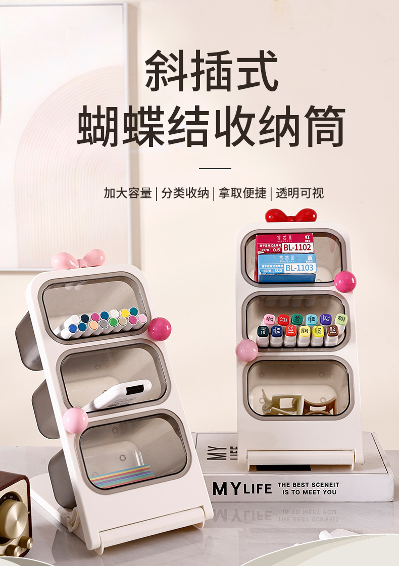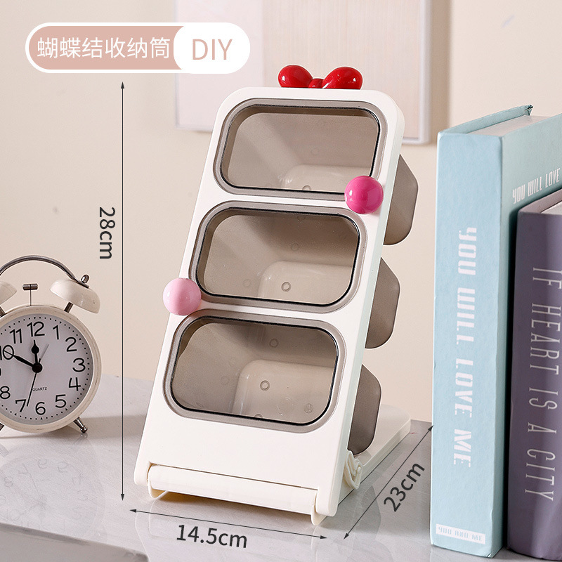• 사선 플러그인 [데스크탑 다층 저장 튜브] 핑크 리본