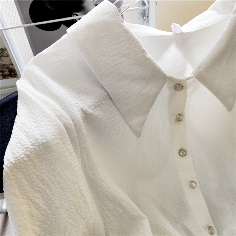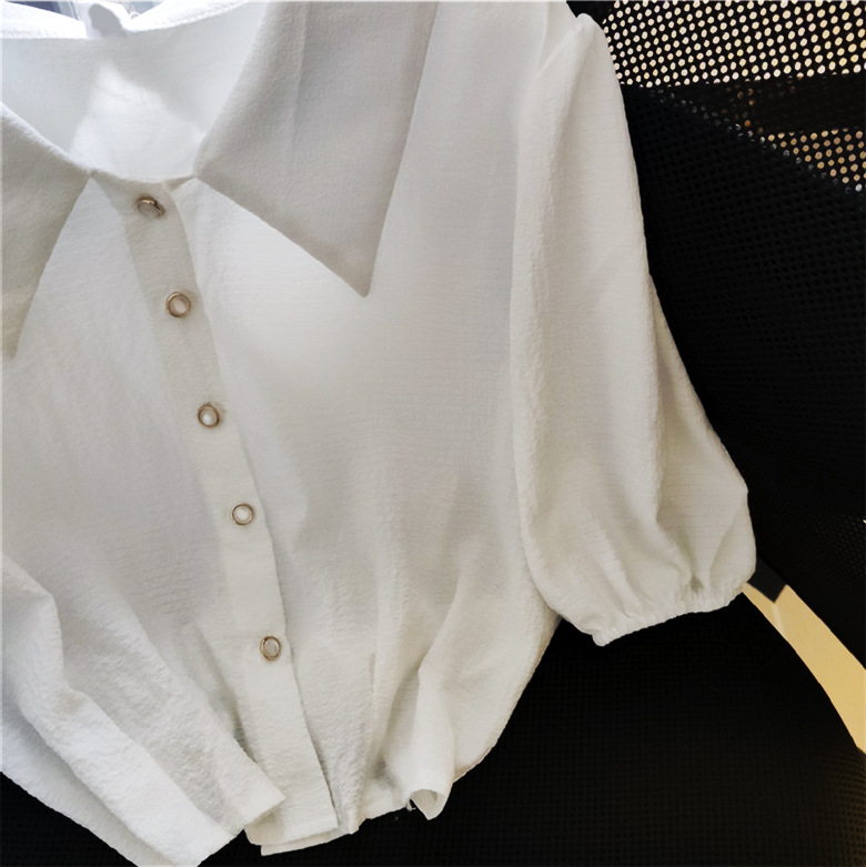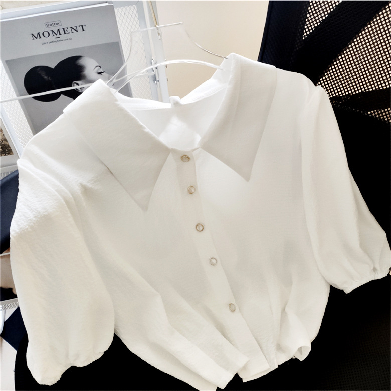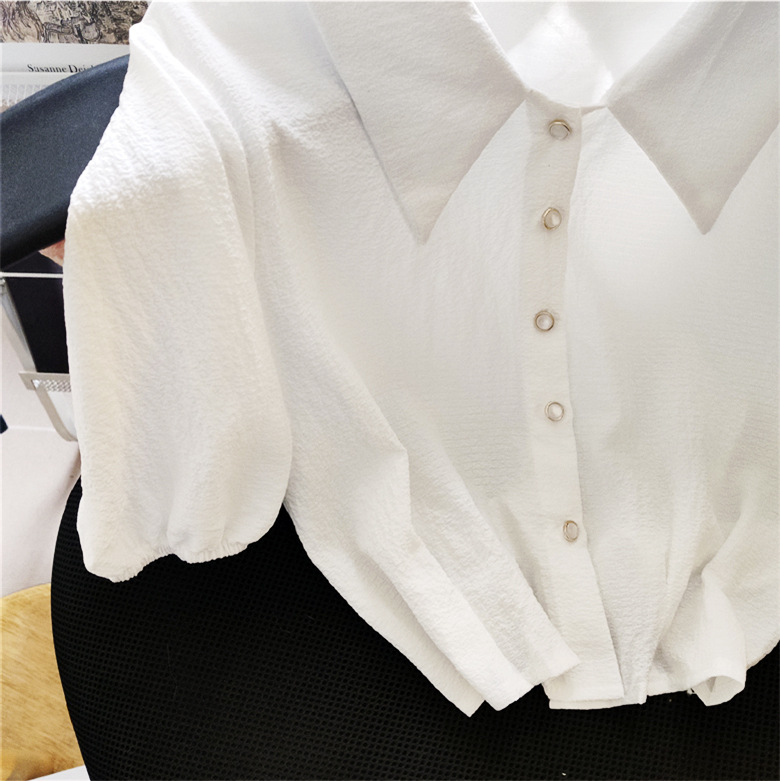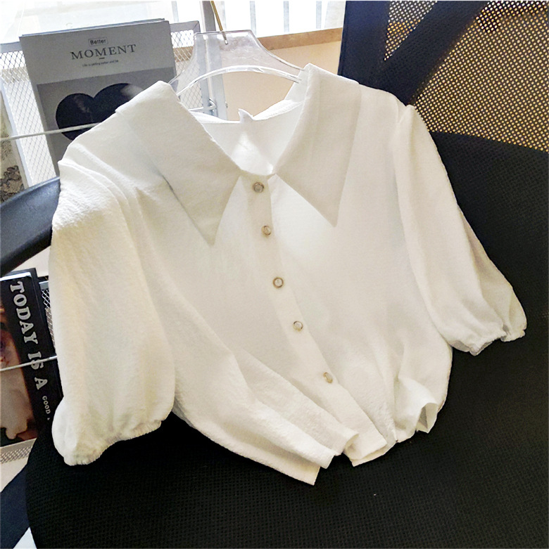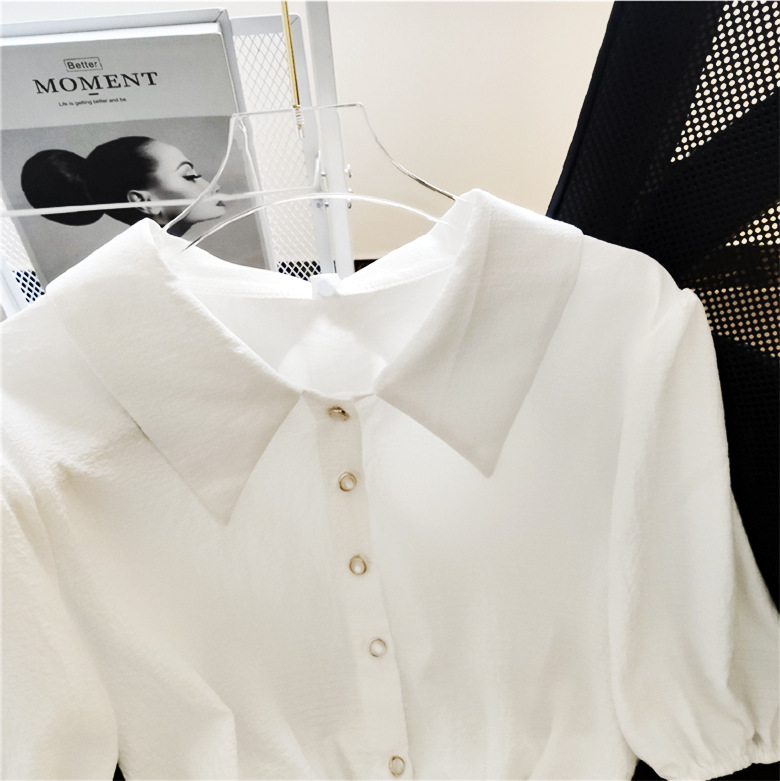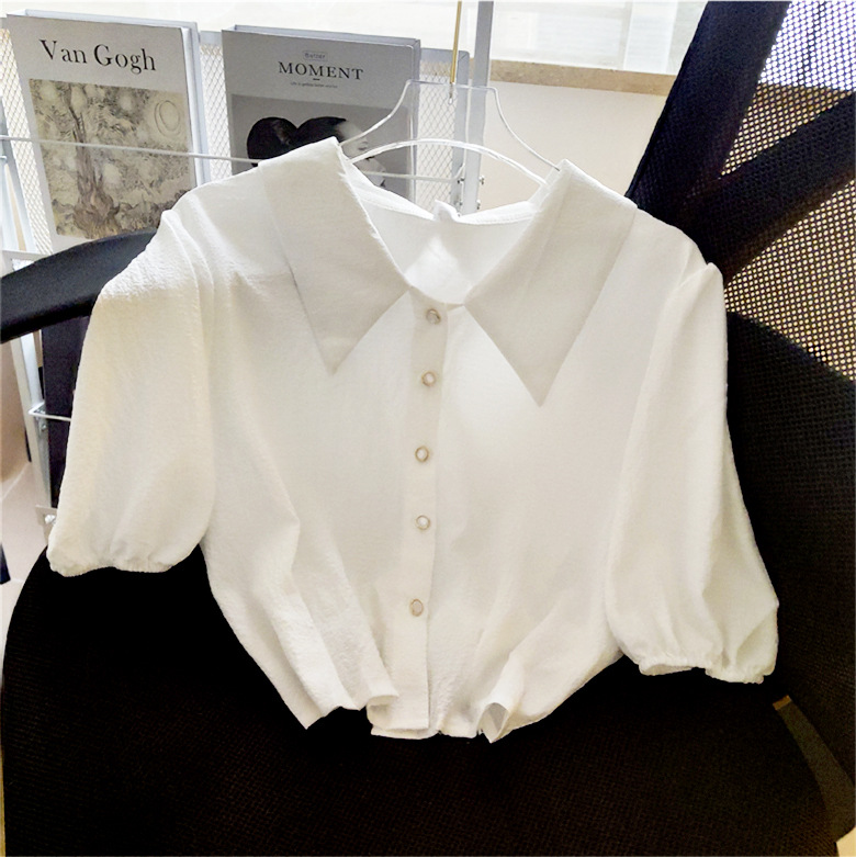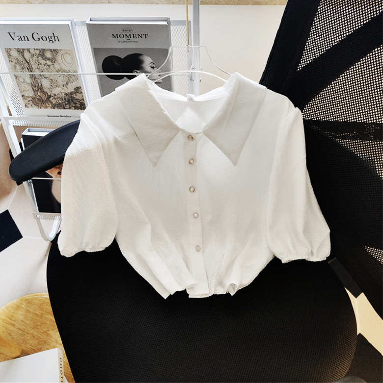리얼 샷 여성용 버블 반팔 셔츠 디자인 센스 프랑스 달콤한 외국 스타일 인형 칼라 탑 여성용 작은 셔츠 셔츠스토어 가기