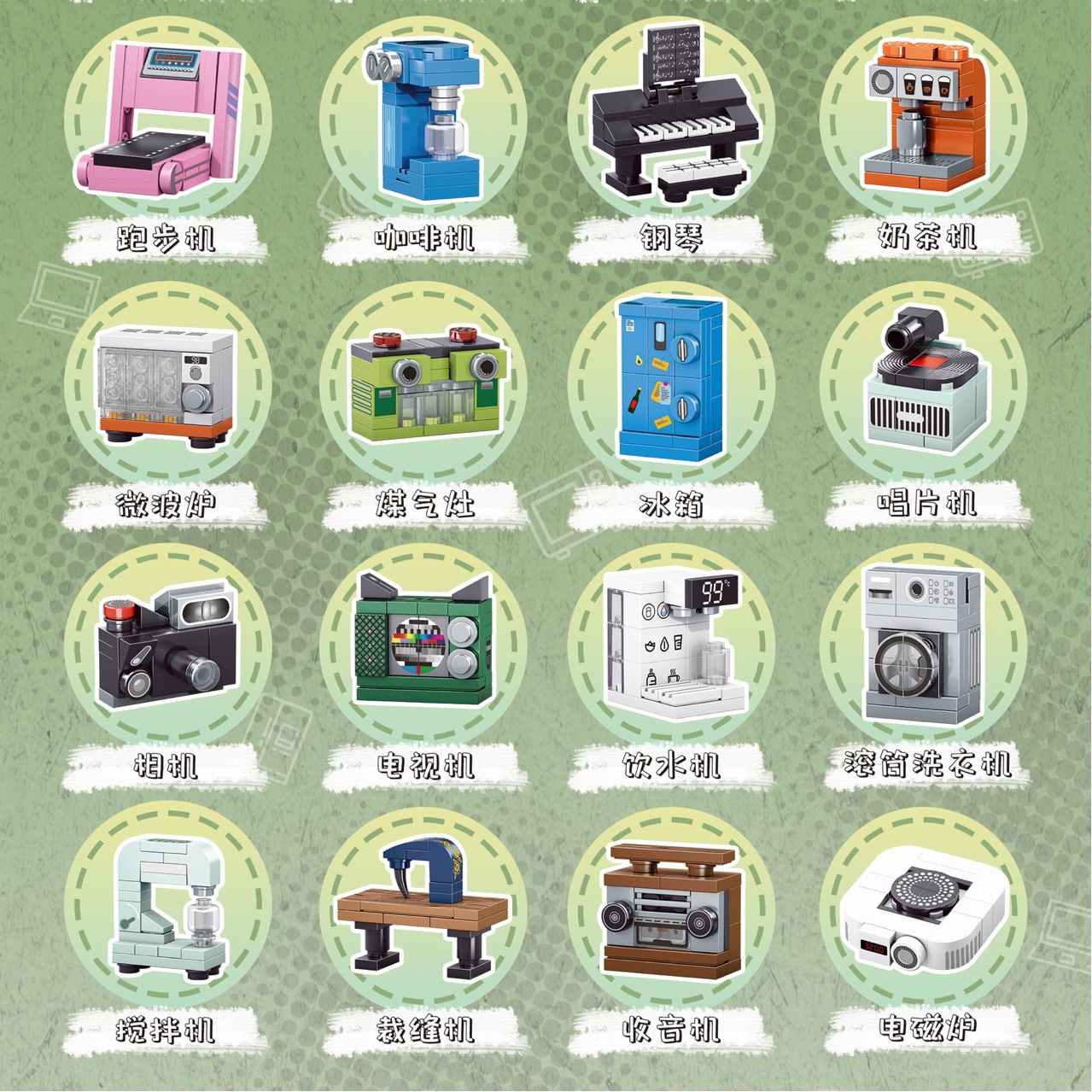 가전 제품 세트 빌딩 블록 미니 TV 냉장고 커피 머신 밥솥 조립 모델 어린이 조립 장난감 선물스토어 가기