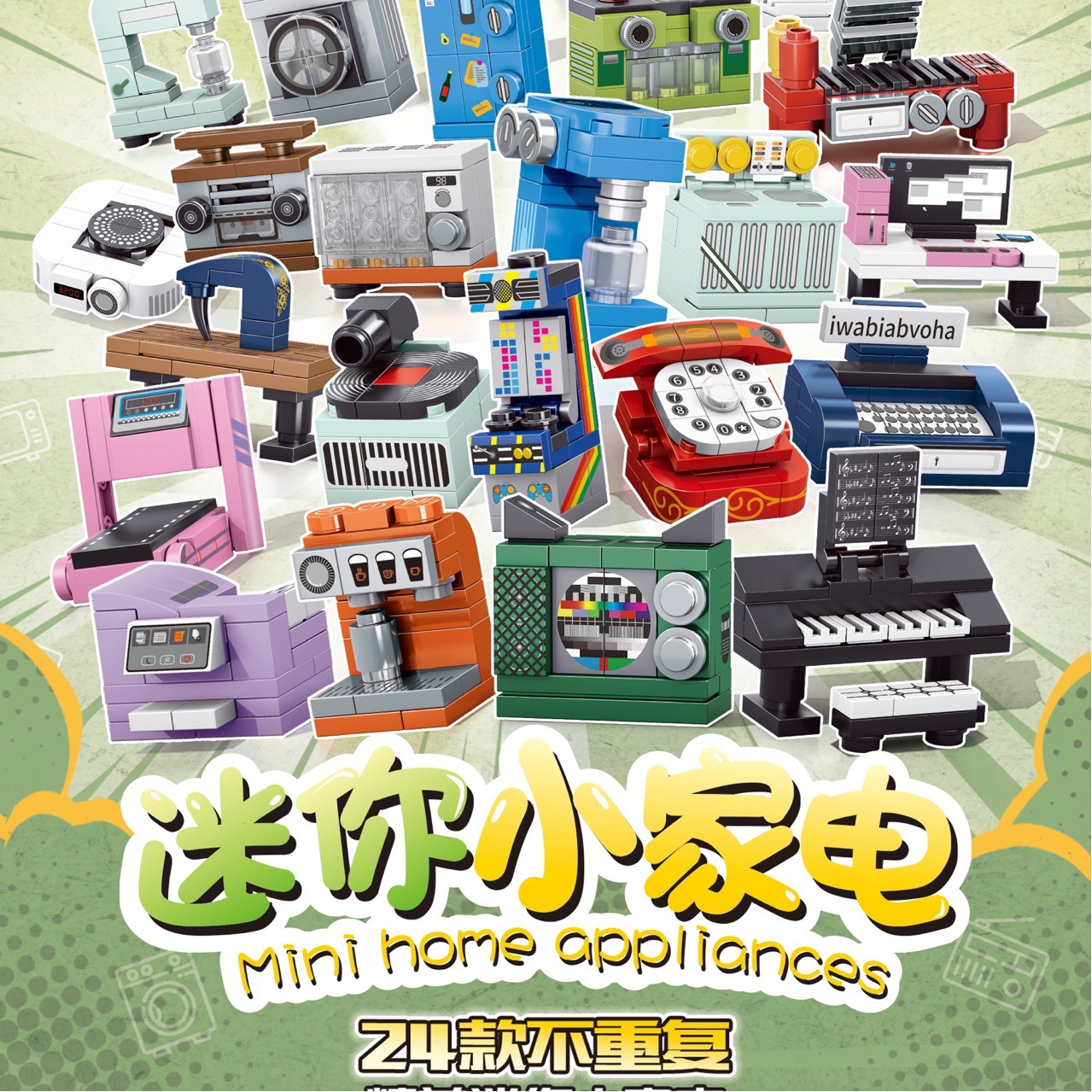 가전 제품 세트 빌딩 블록 미니 TV 냉장고 커피 머신 밥솥 조립 모델 어린이 조립 장난감 선물