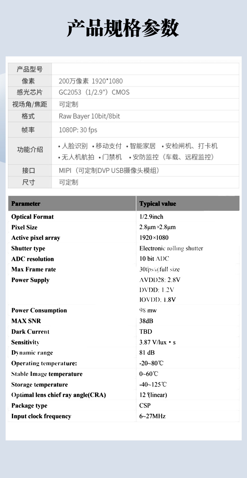 CanMV K230D HD 카메라 1080P30 프레임 GC2053 얼굴 인식 MIPI 카메라 모듈
