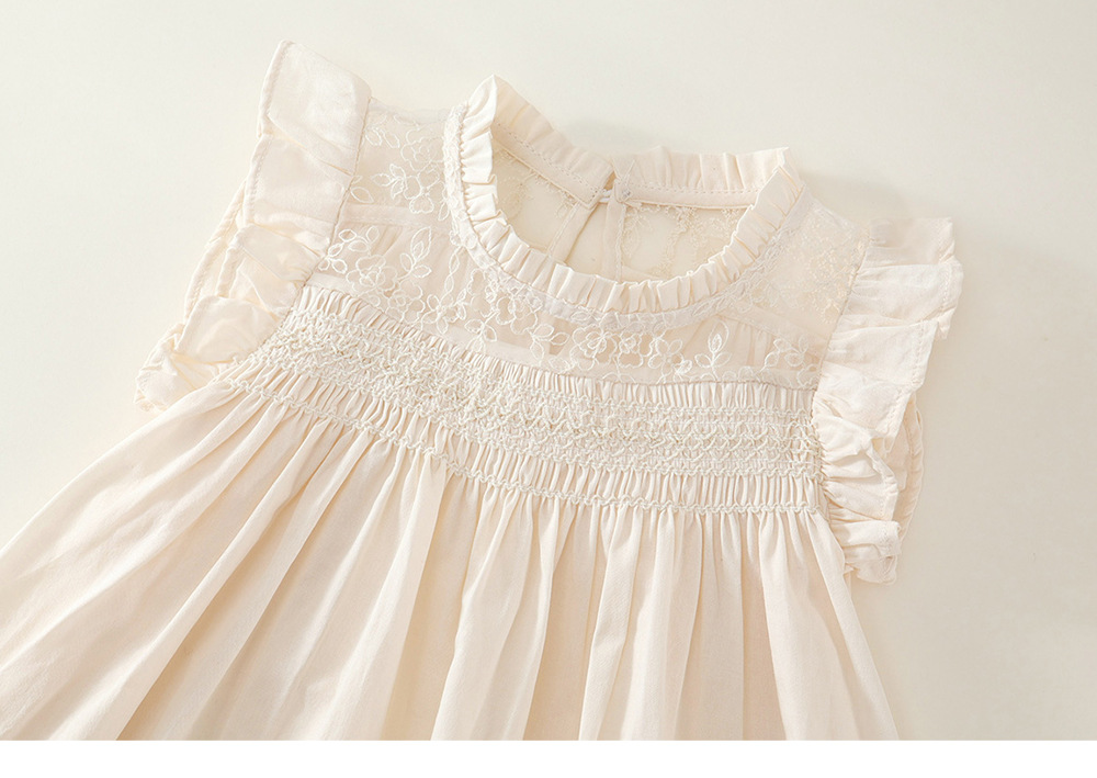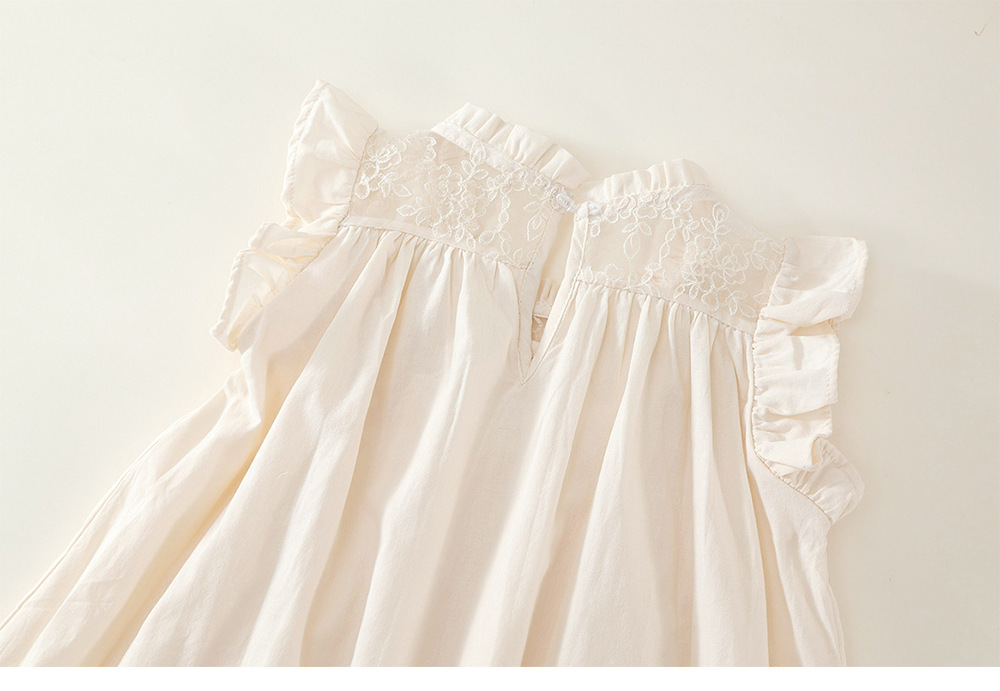 MDD 소녀 원피스 인 스타일 2025 여름 새 스타일 찢어진 슬리브 할로우 레이스 중공업 귀 칼라 스커트스토어 가기
