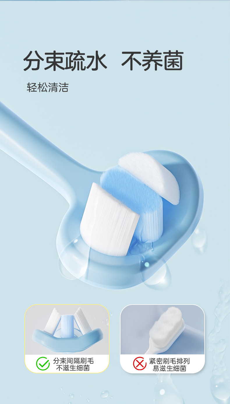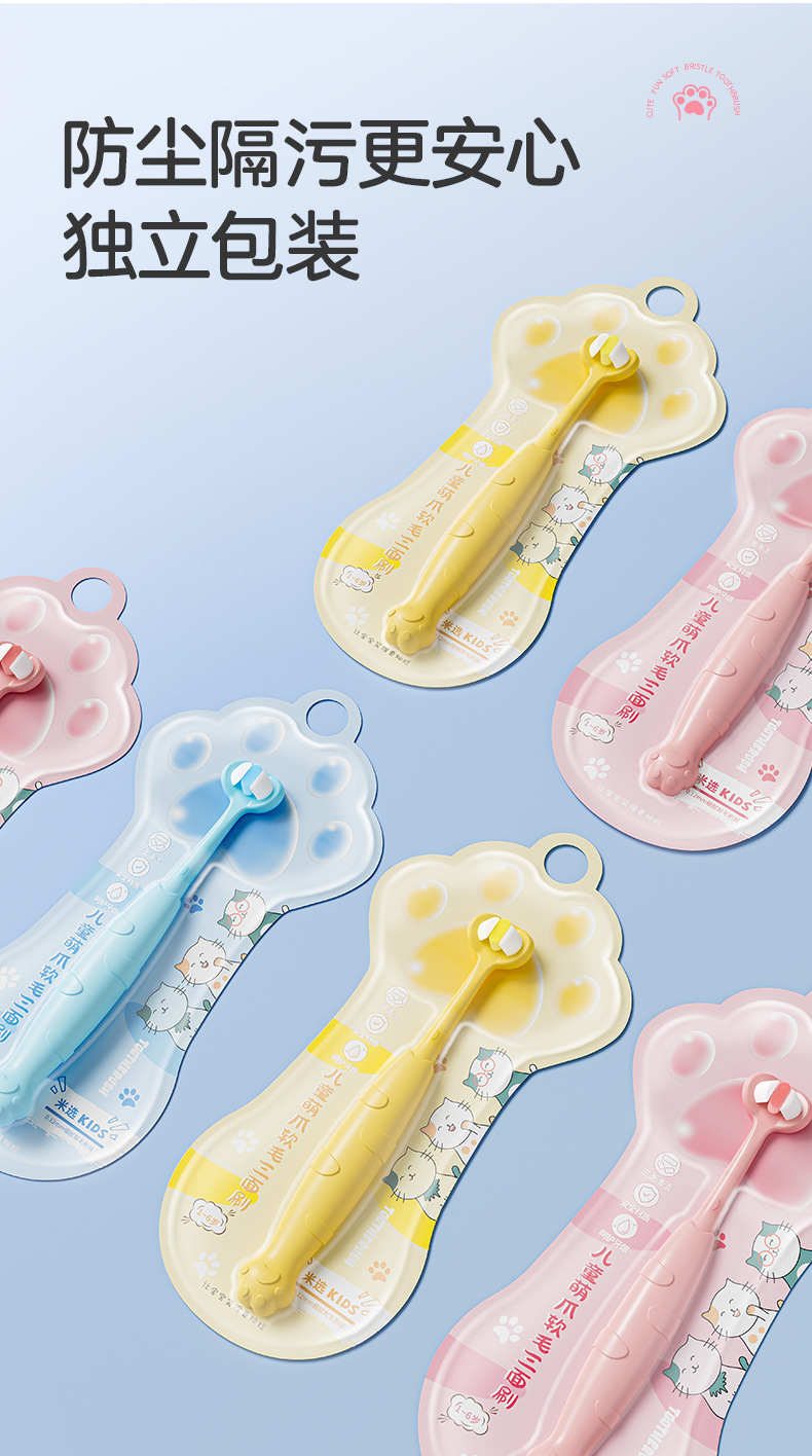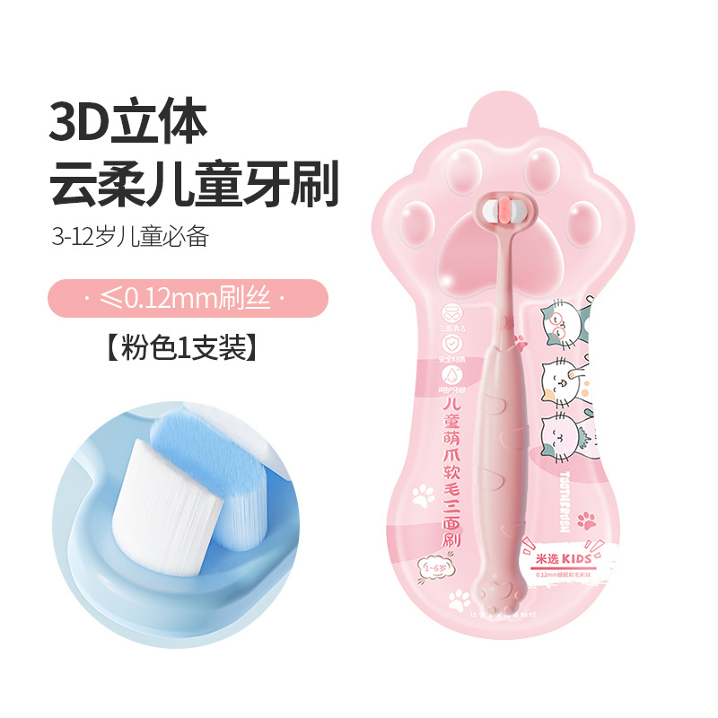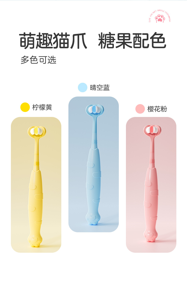 흔들리는 소리 폭발 높은 부드러운 머리 3 면 어린이 칫솔 0-3-6-12 세 아기 가정 제조 업체 도매