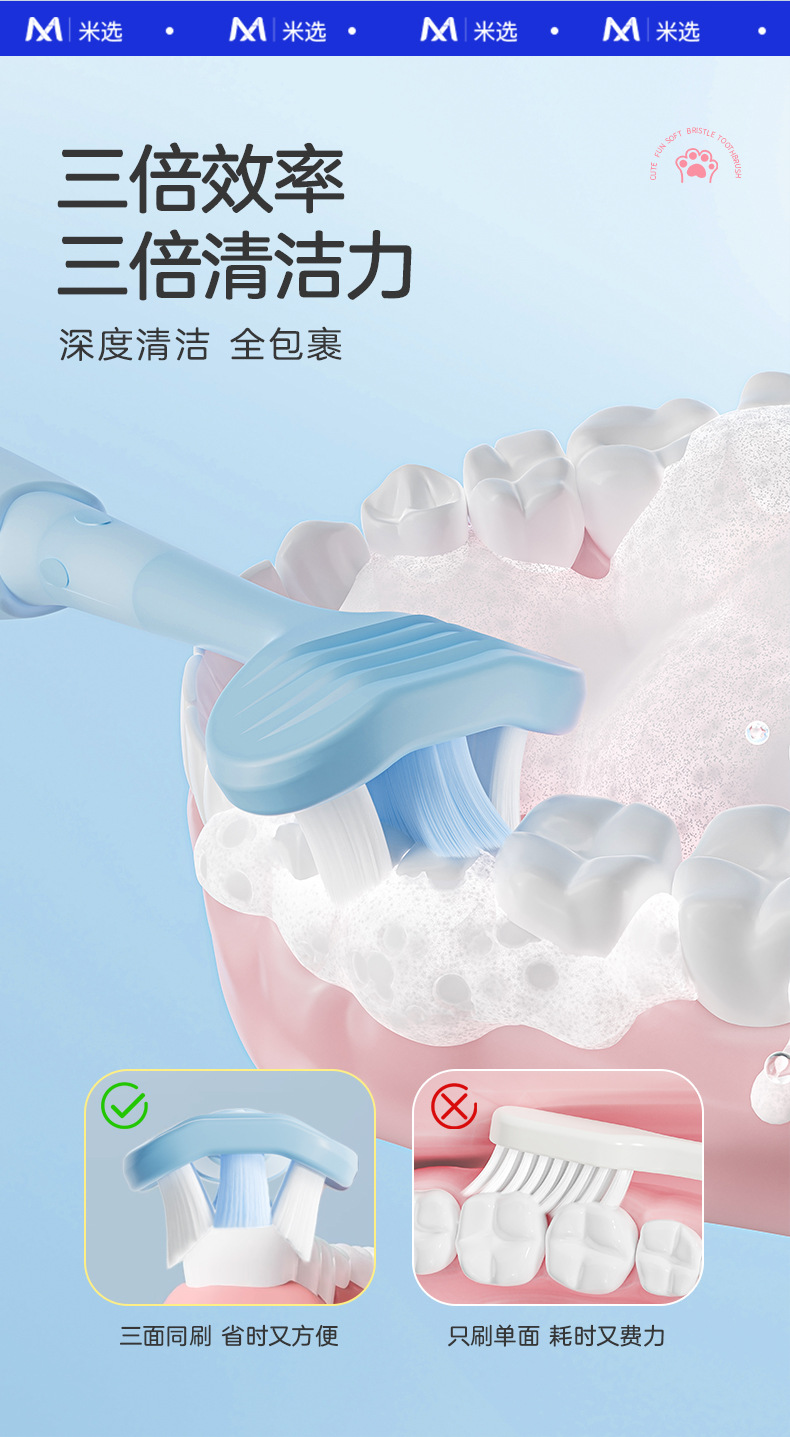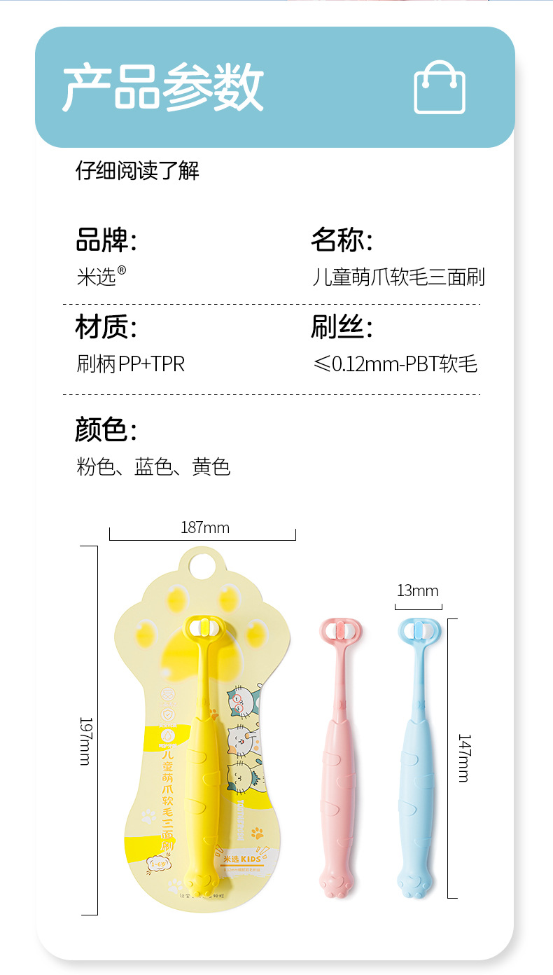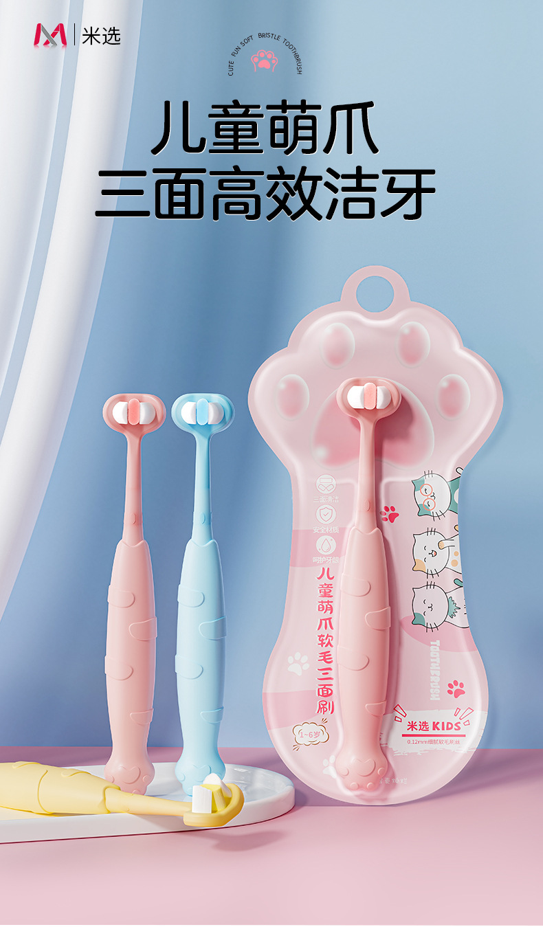 흔들리는 소리 폭발 높은 부드러운 머리 3 면 어린이 칫솔 0-3-6-12 세 아기 가정 제조 업체 도매