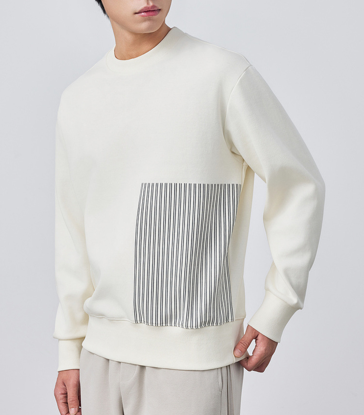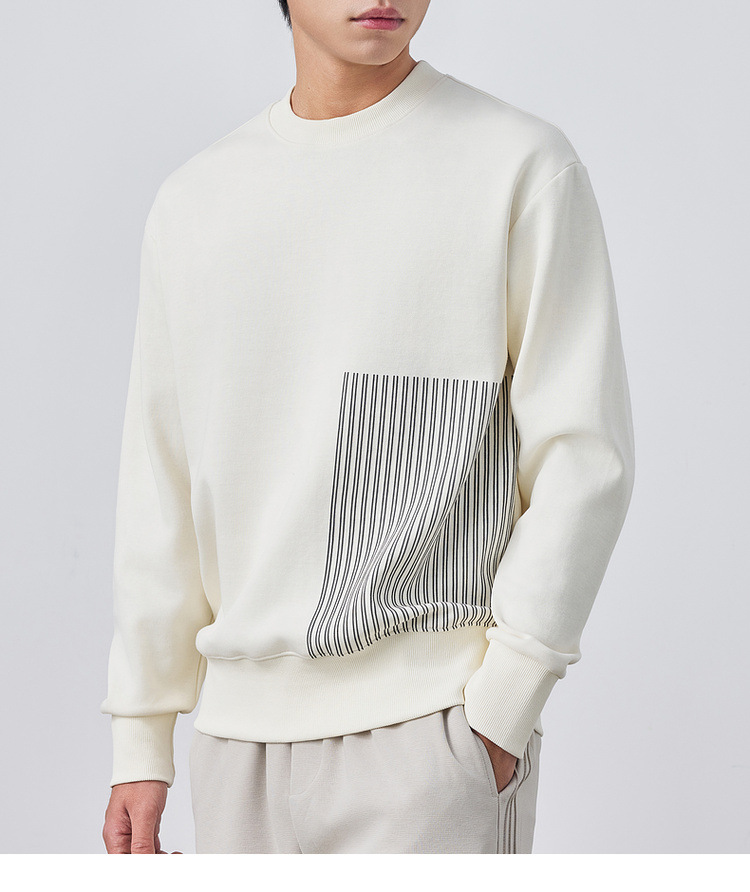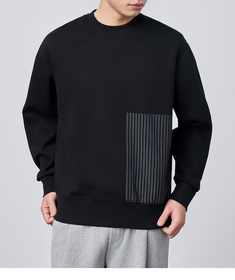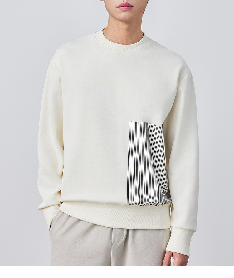 Mimaike 남성용 스트라이프 콘트라스트 컬러 라운드 넥 스웨트 셔츠 남자 2025 봄 새로운 간단한 루즈 남성용 스웨트 셔츠 55500