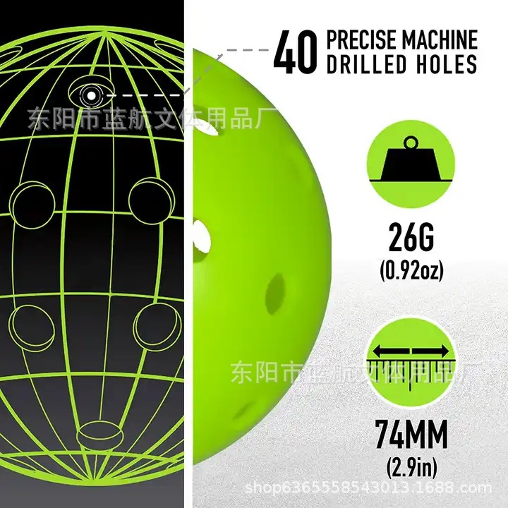 전문 하이 퀄리티 실내 및 실외 피클 볼 40 홀 74mm 홀 볼 PE 높은 탄성 와이피 볼 피클 발스토어 가기