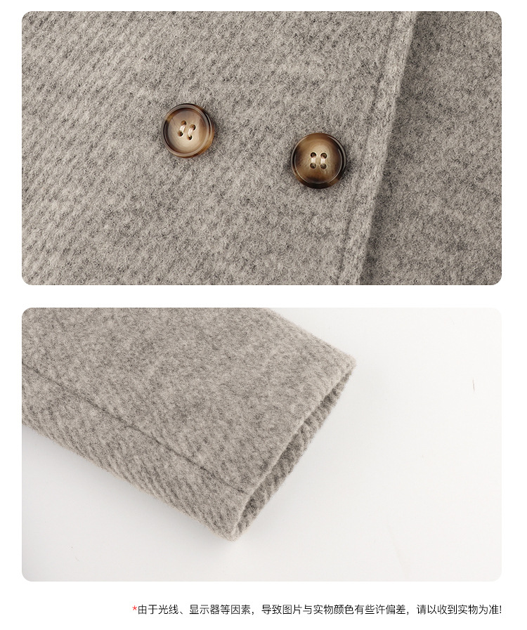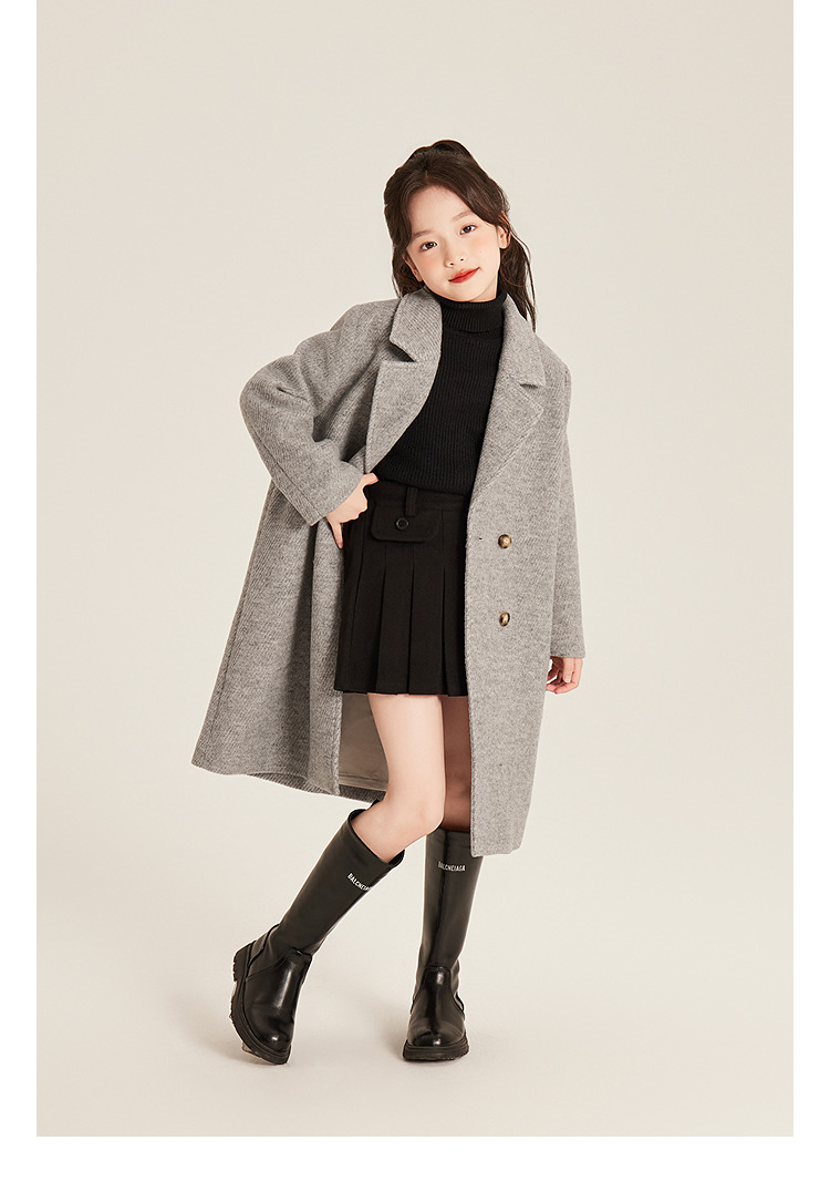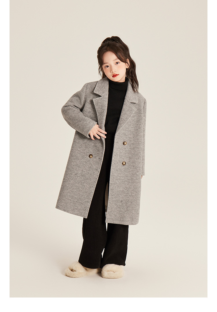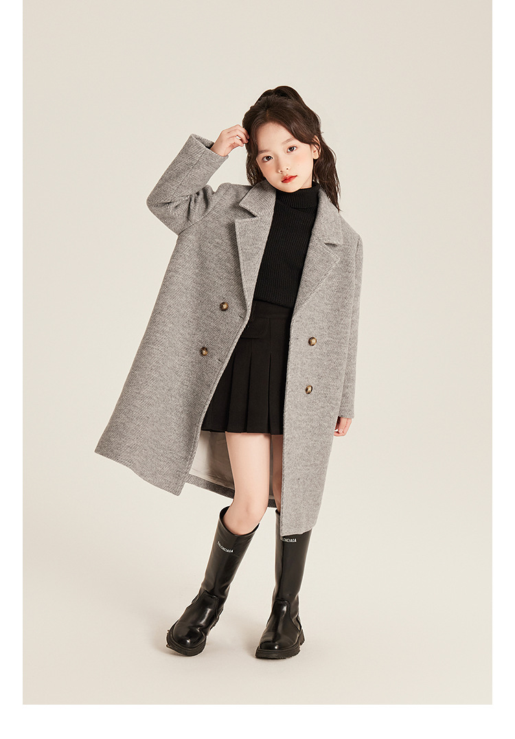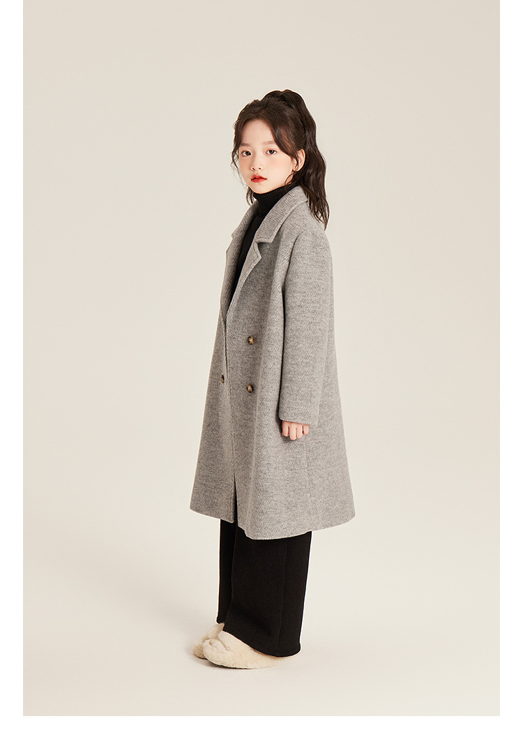 Amybaby Girl's Coat Winter 2024 새로운 클래식 그레이 더블 브레스트 옷깃 모직 코트