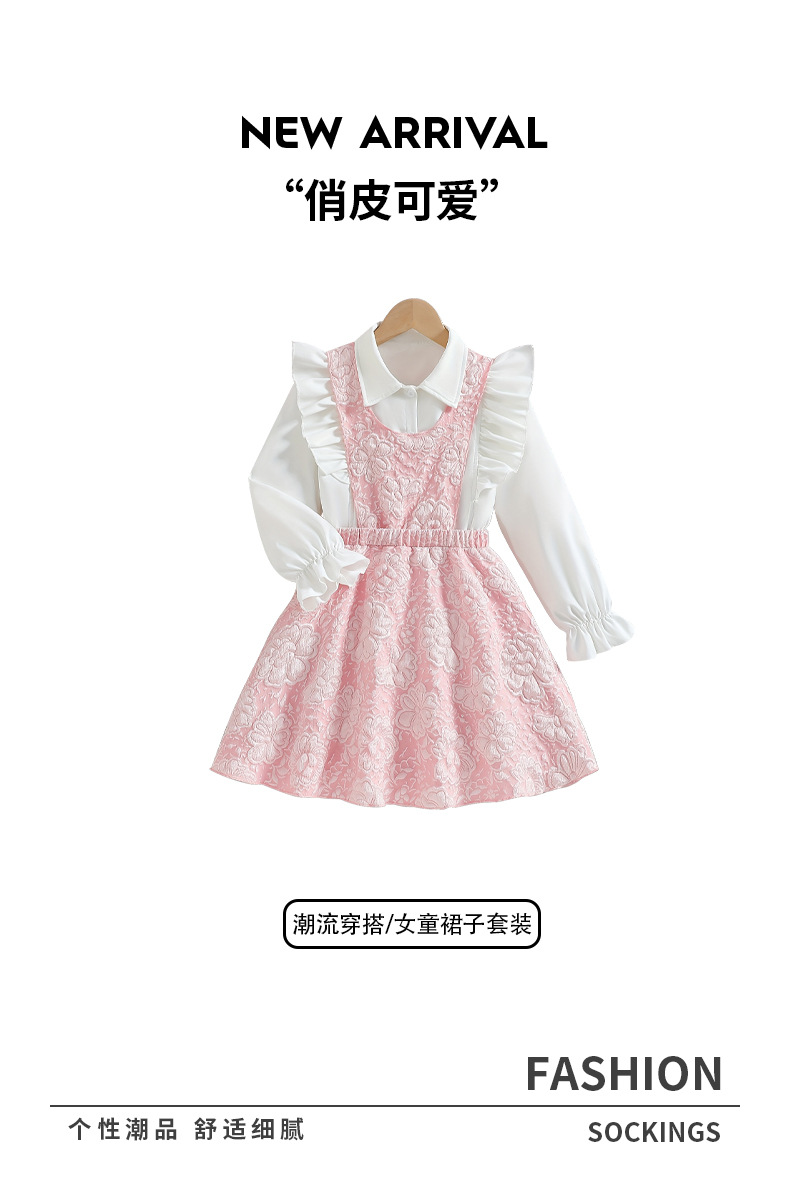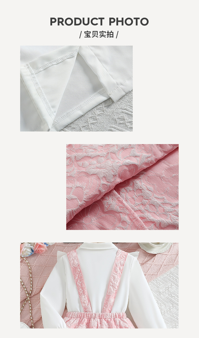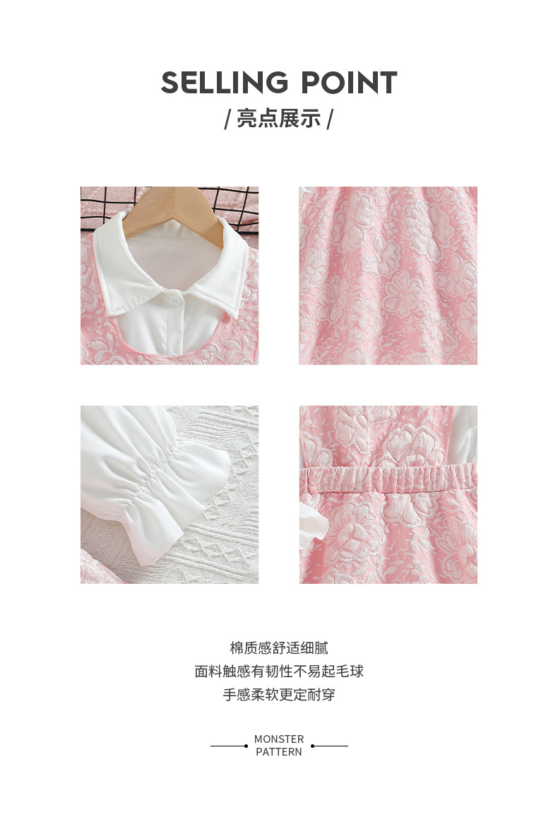 국경 간 소녀의 귀여운 원피스 긴 소매 귀 가장자리 셔츠 바느질 긴 원피스 핑크 3 차원 꽃 어린이 A 라인 원피스