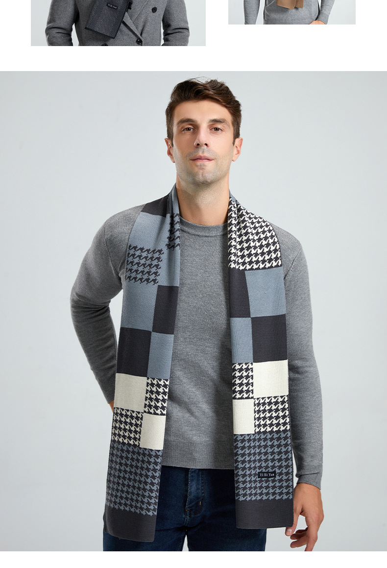 가을과 겨울 새로운 남성 모조 캐시미어 니트 스카프 Maillard 스타일 일본식 하이 엔드 Sense Plaid 대비 스카프 남성용스토어 가기