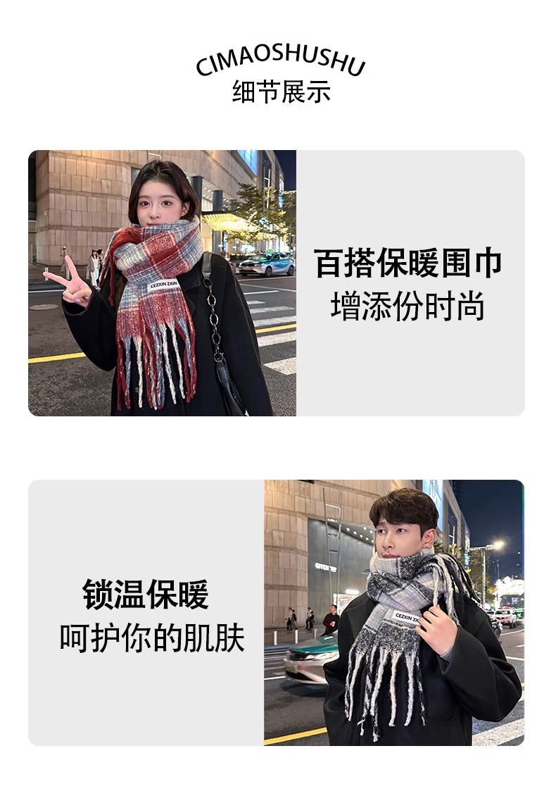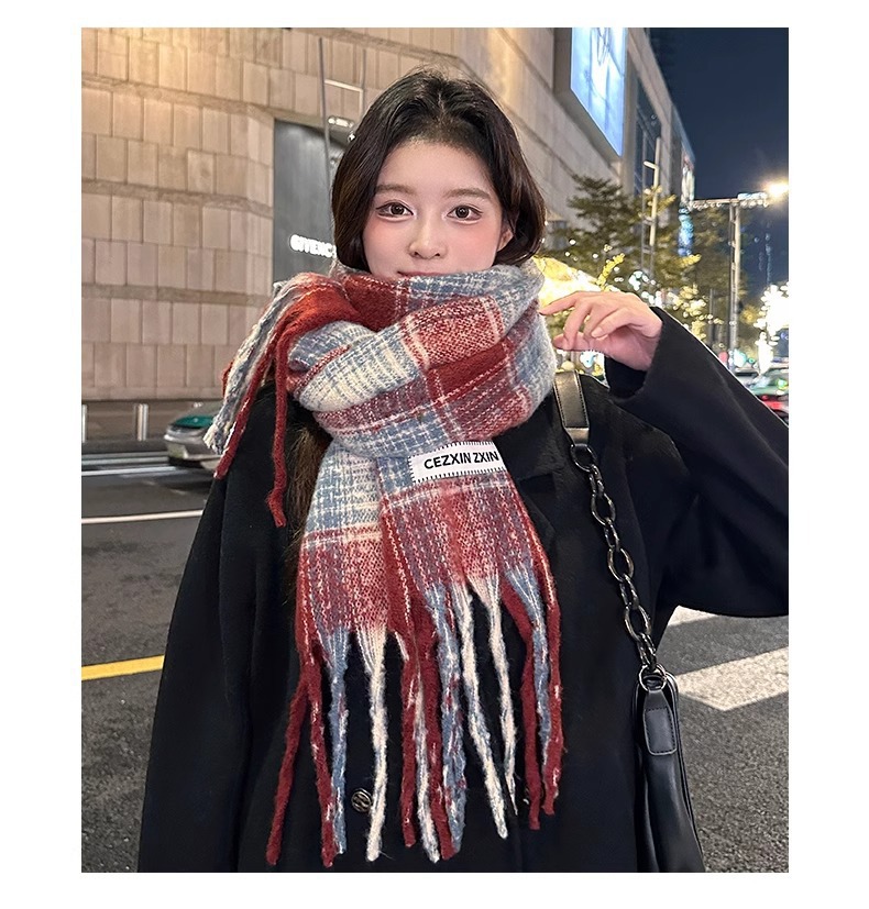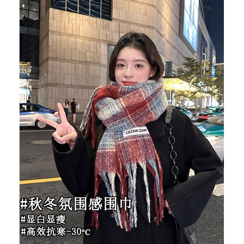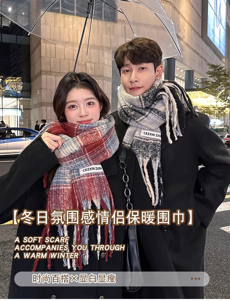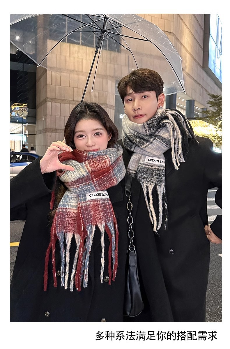 한국식 분위기 색상 매칭 격자 무늬 스카프 여성 겨울 학생 커플 따뜻한 올 매치 캐시미어 긴 목도리