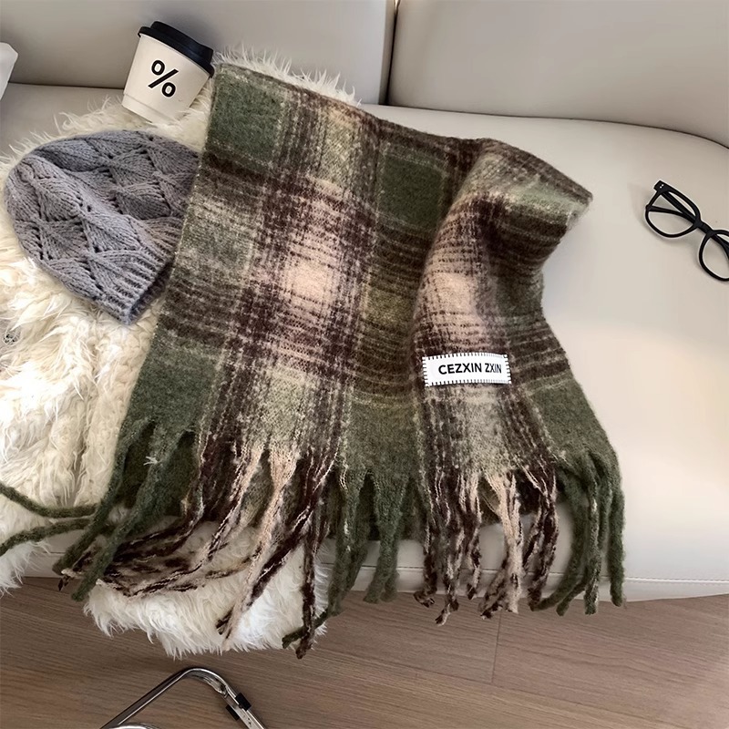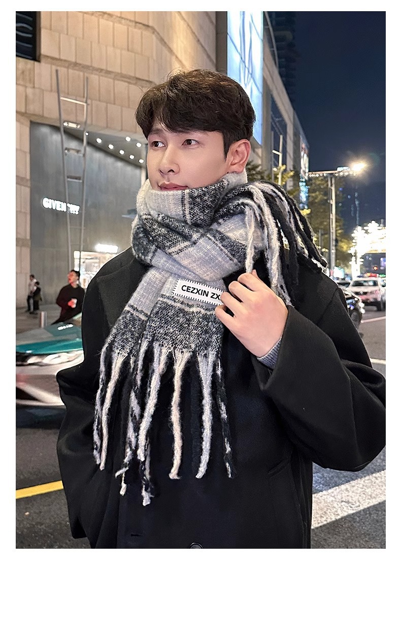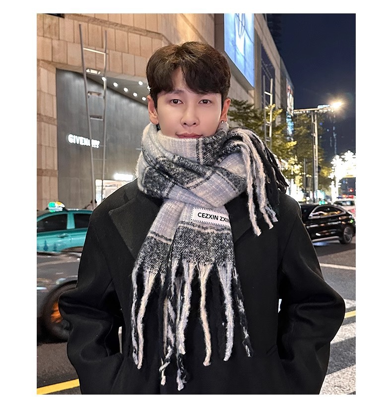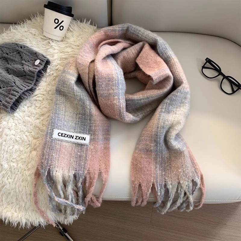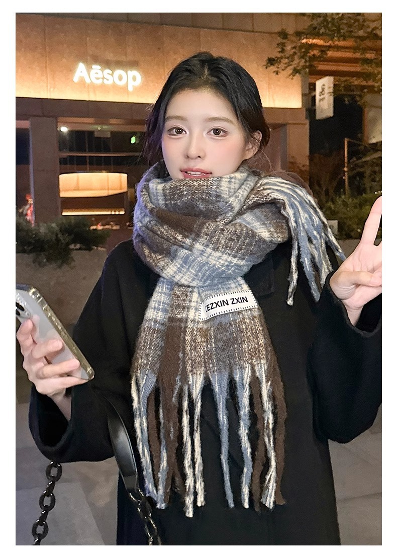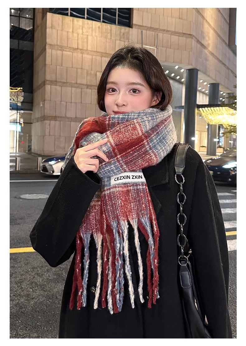 한국식 분위기 색상 매칭 격자 무늬 스카프 여성 겨울 학생 커플 따뜻한 올 매치 캐시미어 긴 목도리