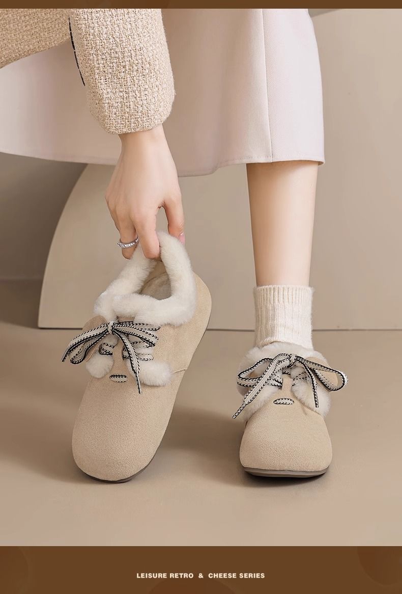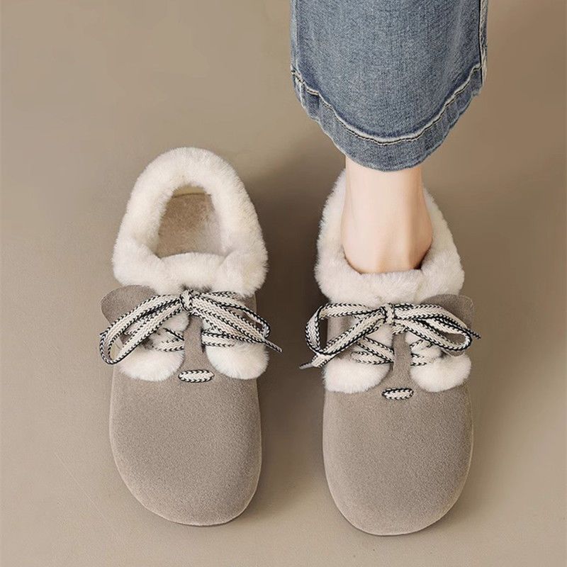 여성용 모피 신발 2025 새로운 가을 겨울 부드러운 밑창 Birkenstock 신발 벨벳 따뜻한 콩면 신발스토어 가기