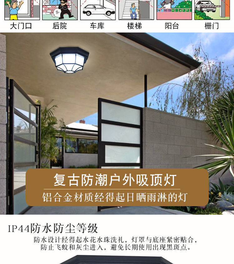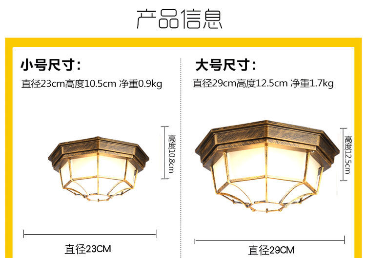 야외 발코니 입구 통로 복도 천장 조명 유럽 복고풍 야외 방수 및 방습 팔각형 조명 LED스토어 가기