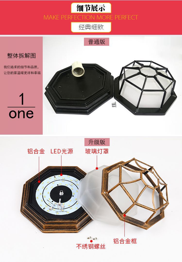 야외 발코니 입구 통로 복도 천장 조명 유럽 복고풍 야외 방수 및 방습 팔각형 조명 LED