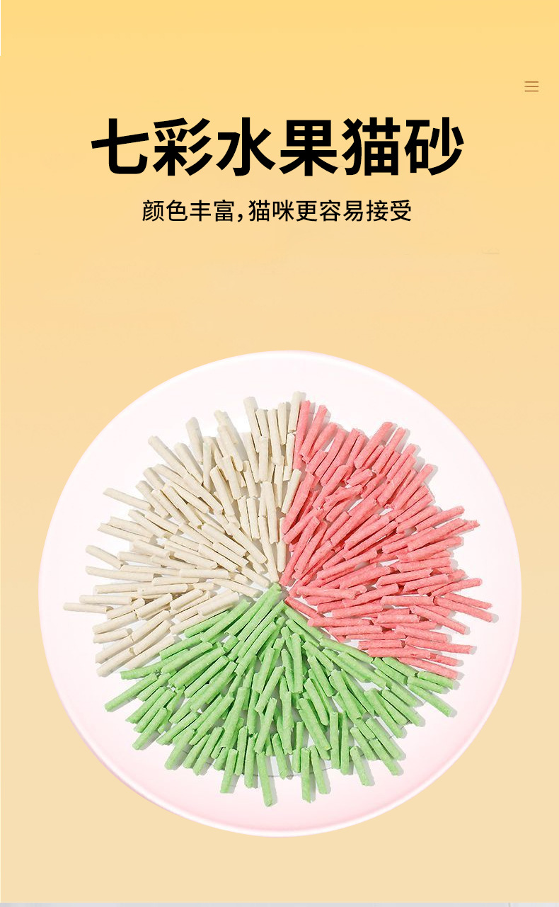 다채로운 과일 고양이 쓰레기 2kg 낮은 먼지 덩어리 비 스틱 바닥 플러시 화장실 벤토나이트 혼합 두부 고양이 쓰레기 도매