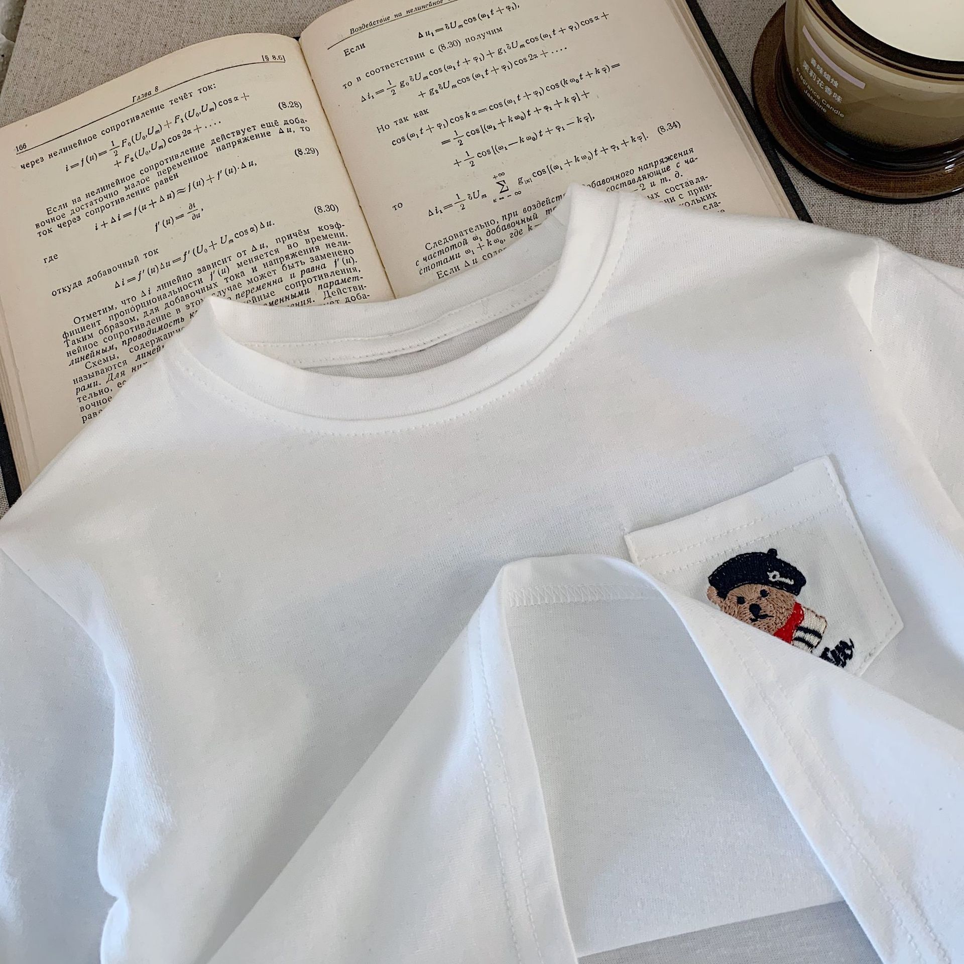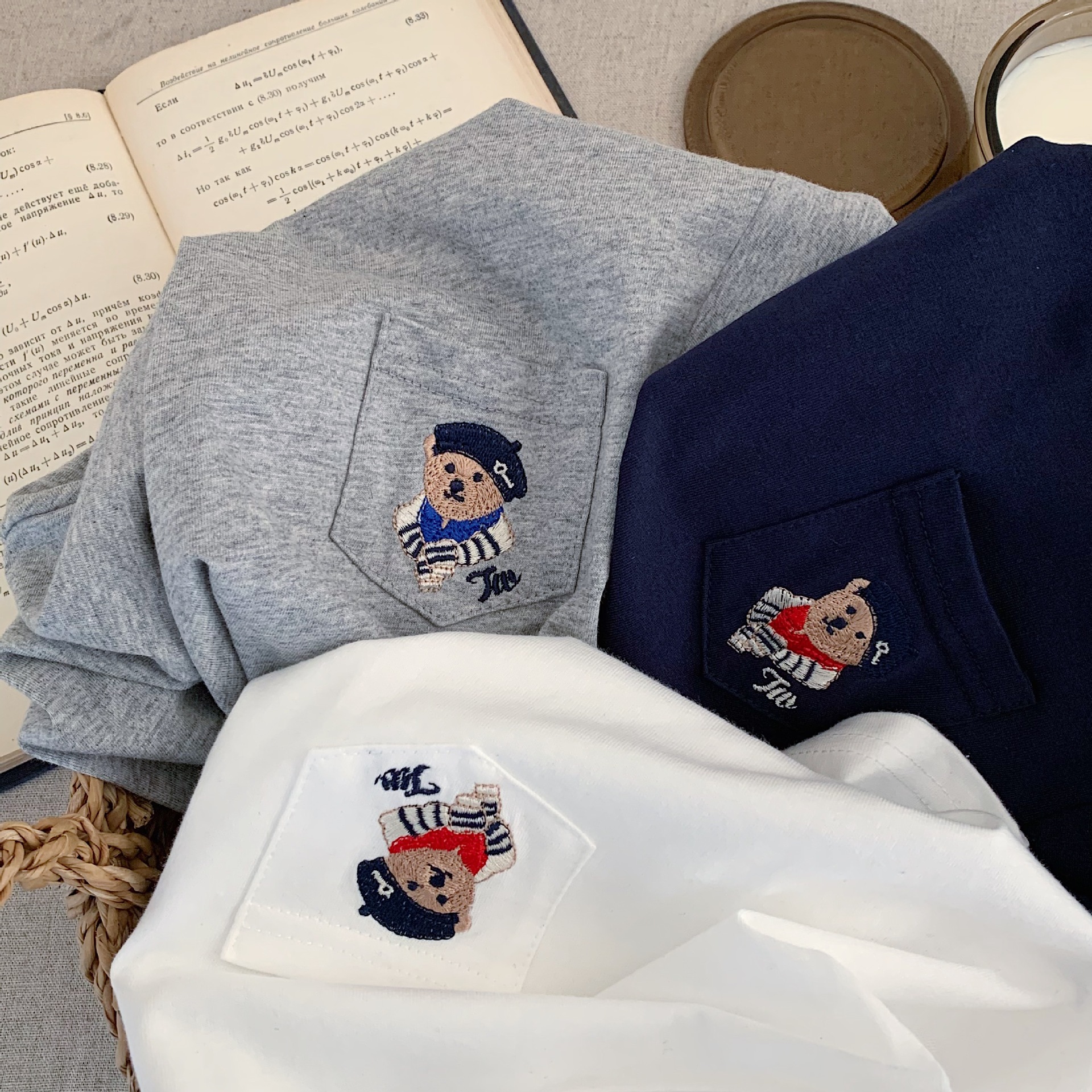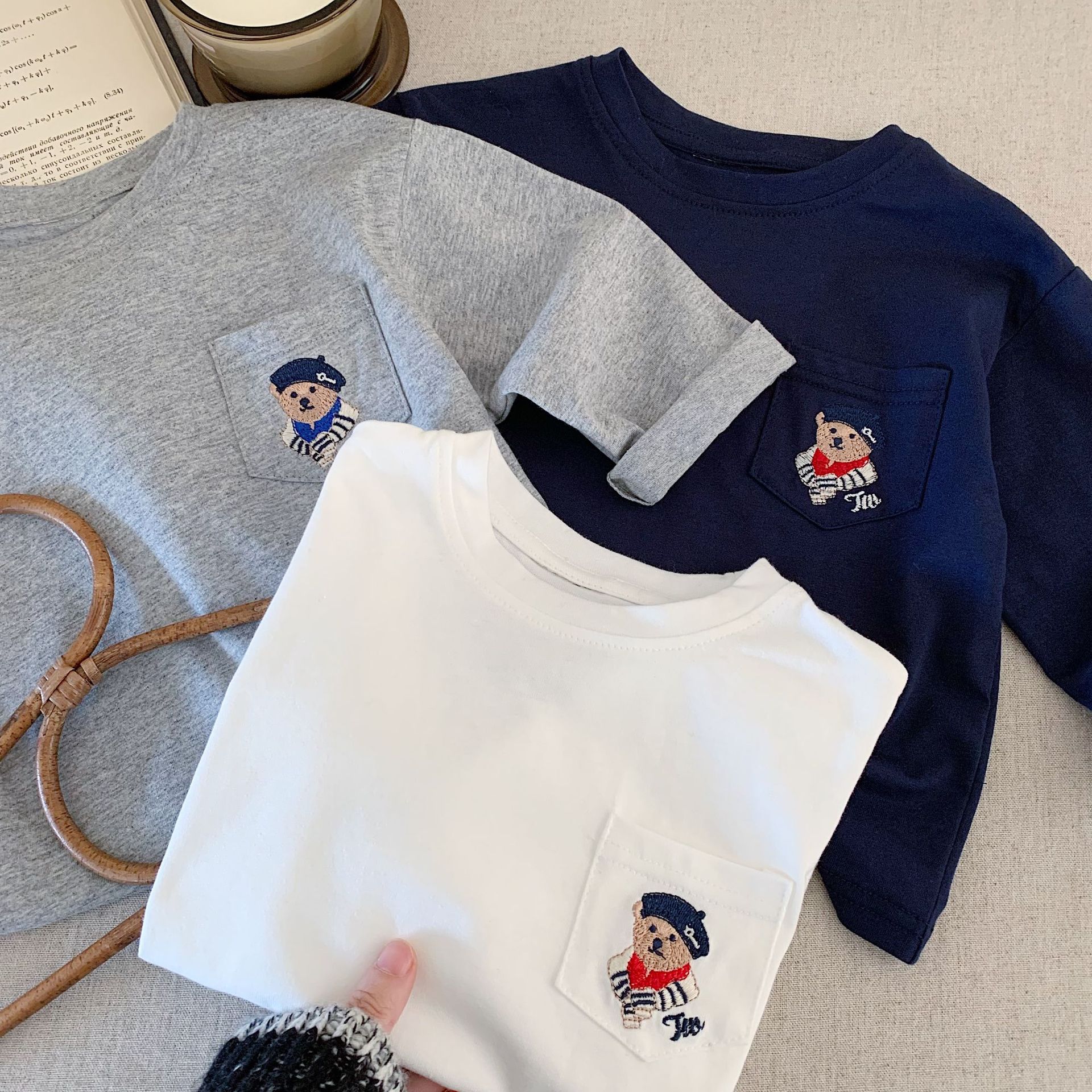 어린이 티셔츠 2025 부가슈 가을 신제품 소년과 소녀 수 놓은 곰 긴팔 T 아기 단순 바닥 셔츠 유행스토어 가기