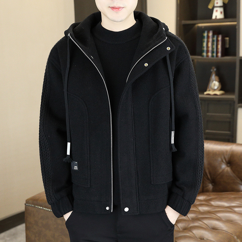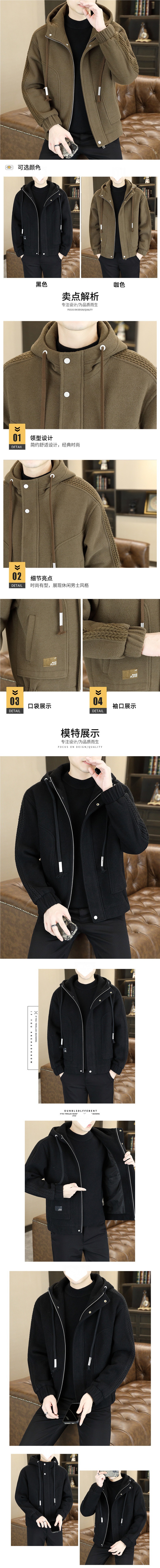 모직 재킷 남자 2024 가을과 겨울 패션 브랜드 두꺼운 후드 워크 자켓 남성 캐주얼 모직 탑