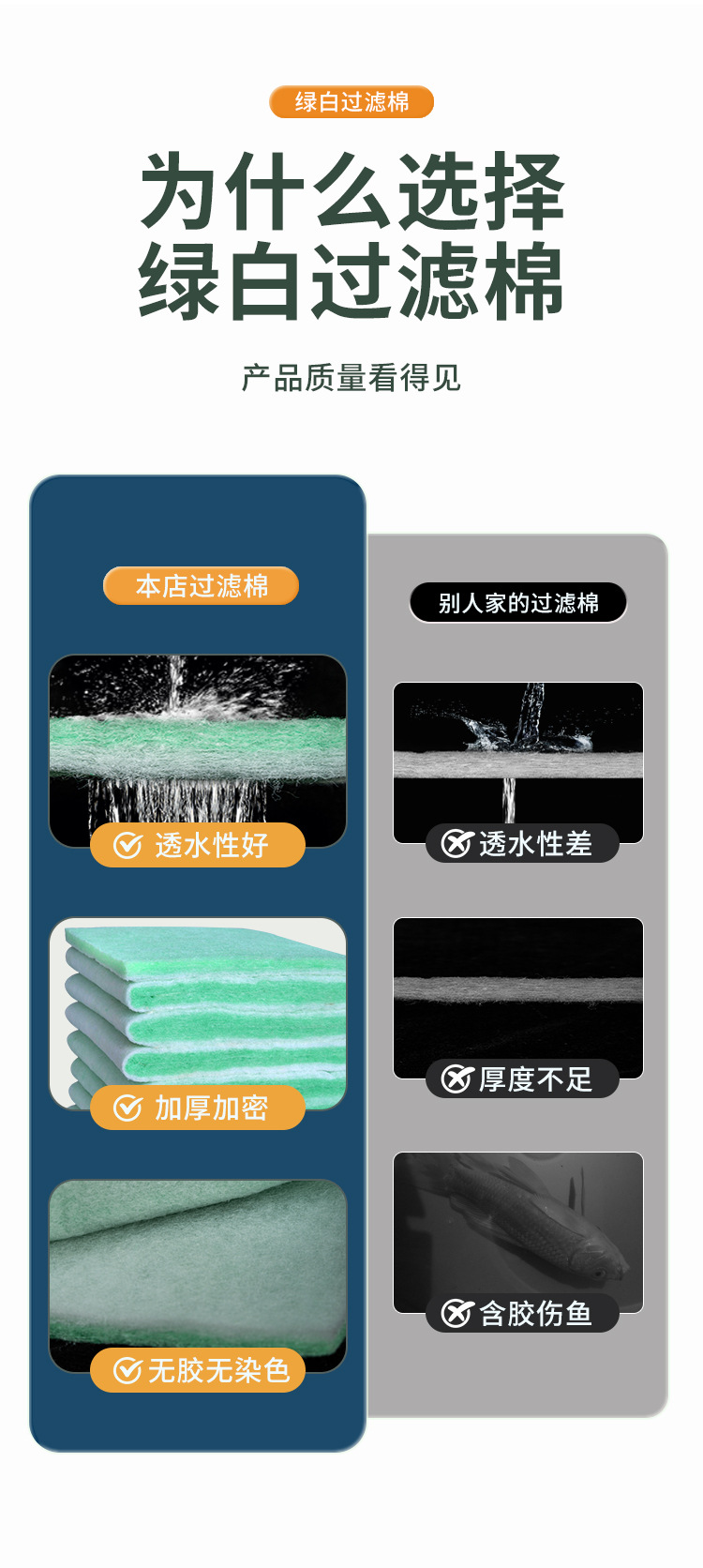 물고기 탱크 필터 면화 정수 박테리아 필터 물고기 연못 전용 고밀도 두꺼운 생화학 면 녹색 백면 필터 재료
