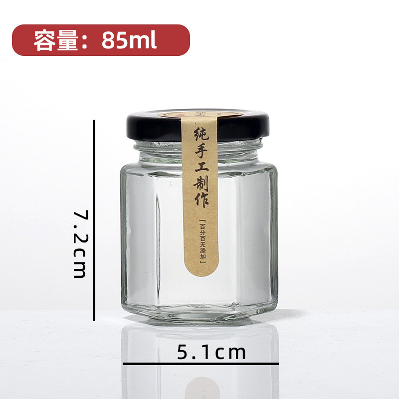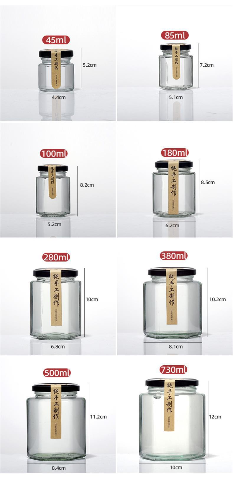 6 면 유리 병 식품 등급 봉인 된 항아리 레몬 페이스트 킬로 허니 병 칠리 소스 잼 쇠고기 소스