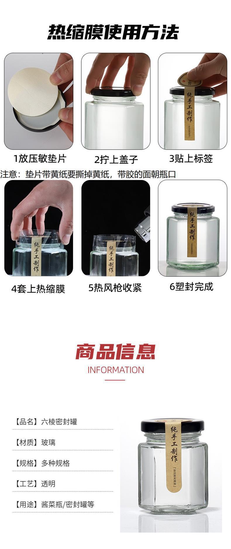 6 면 유리 병 식품 등급 봉인 된 항아리 레몬 페이스트 킬로 허니 병 칠리 소스 잼 쇠고기 소스스토어 가기