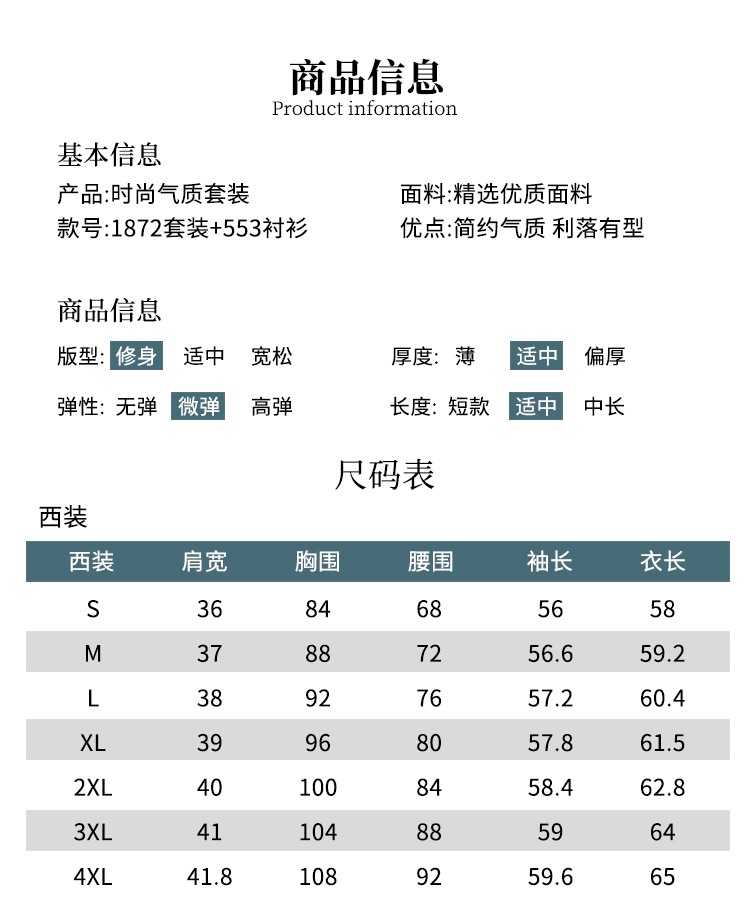 • 살구 양복 + 바지 + 553 파란색 셔츠