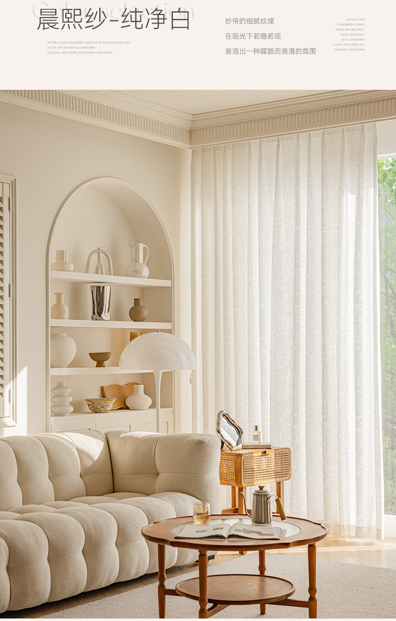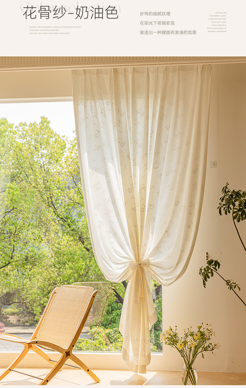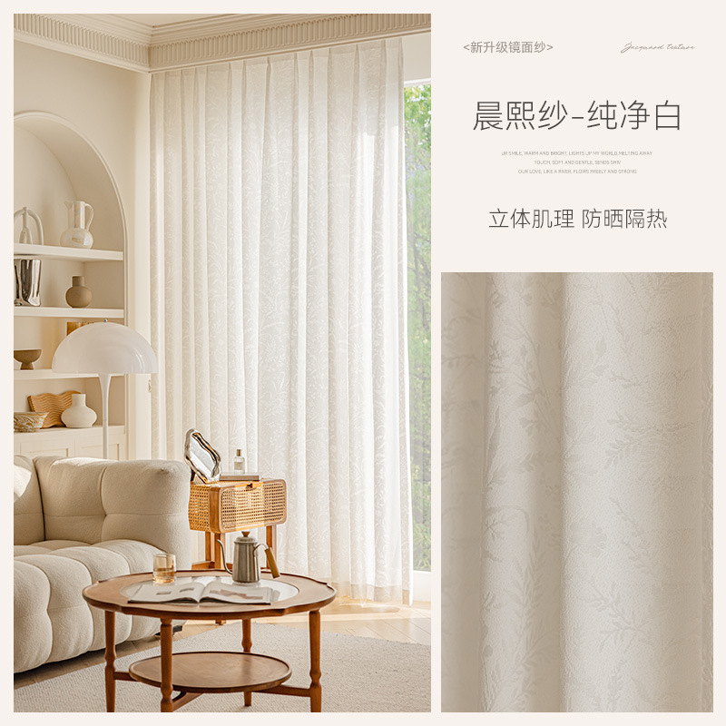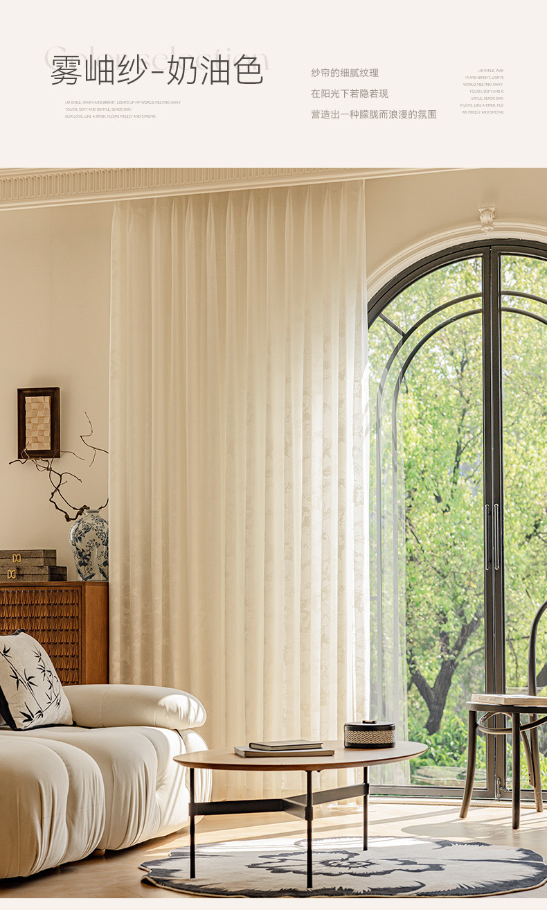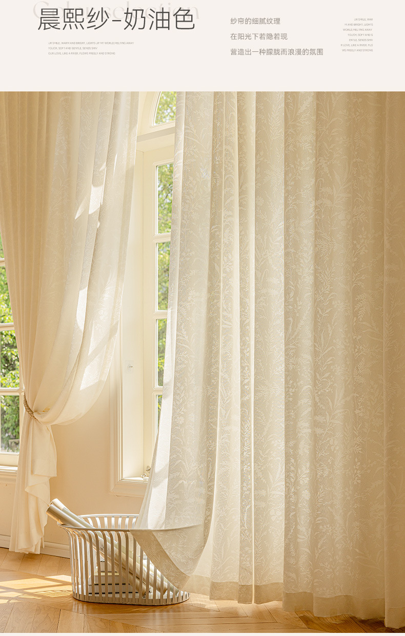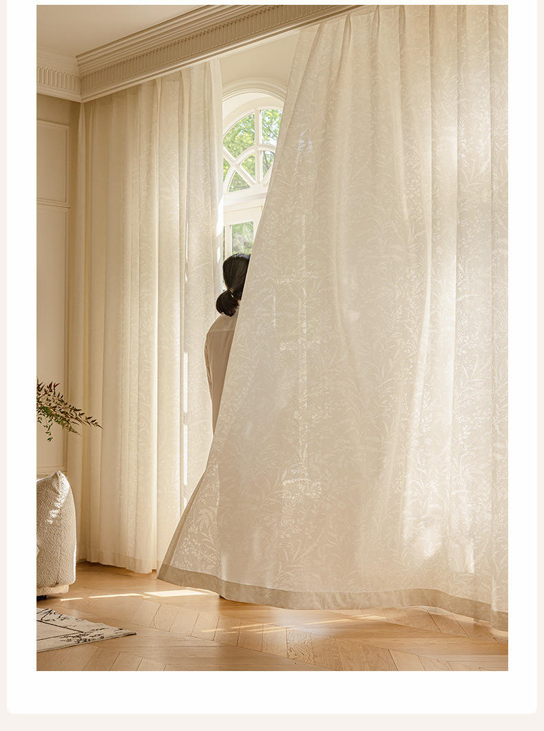 발코니 단열 거울 베일 커튼, 빛이 투과되지만 사람을 보이지 않는 프랑스식 커튼, 맞춤형 거실 베이 창, 크림 스타일, 쓰촨 코랴오스토어 가기