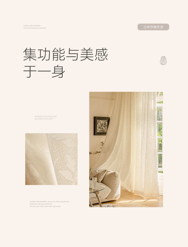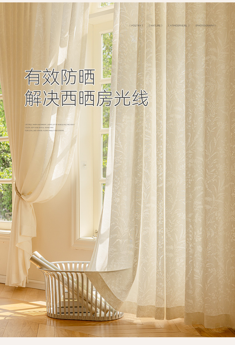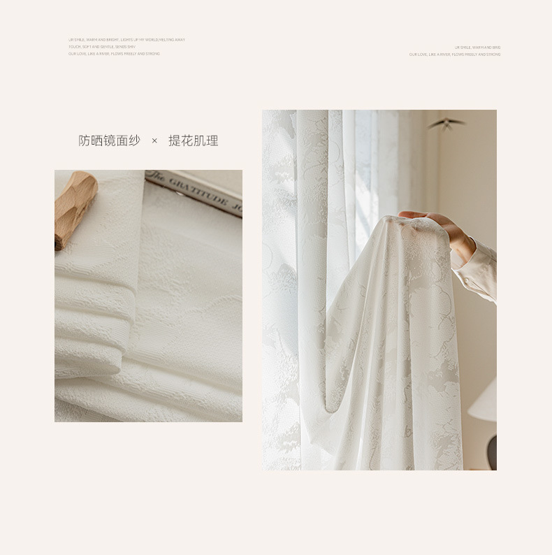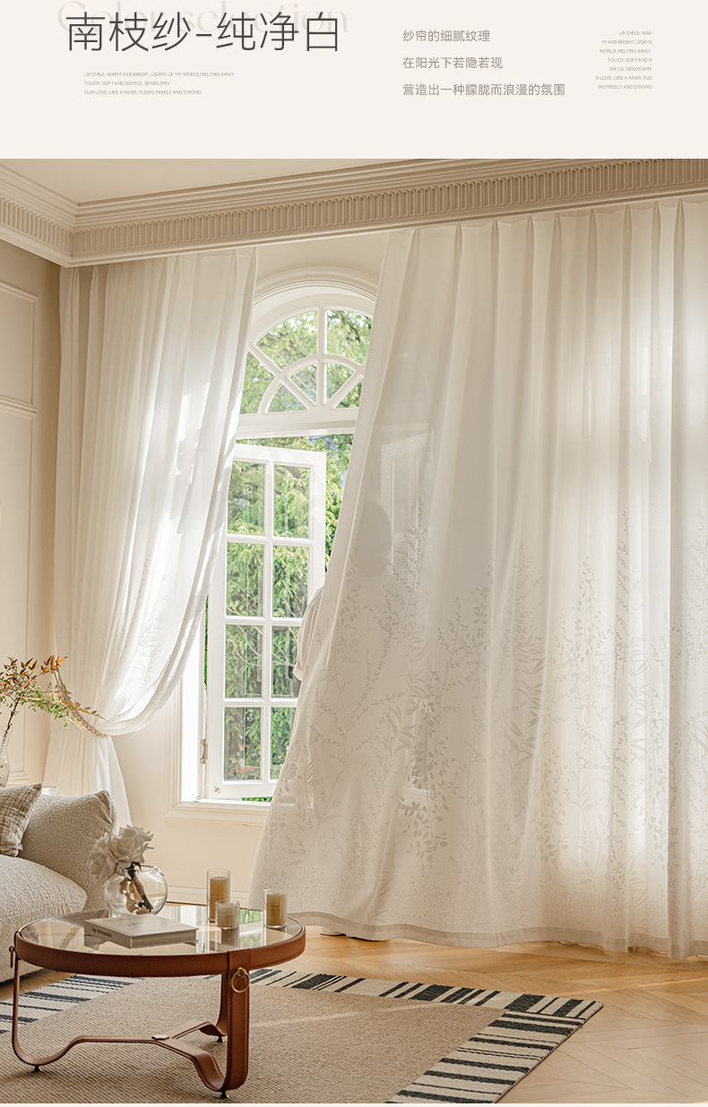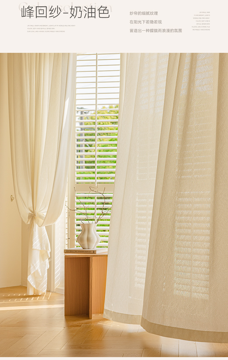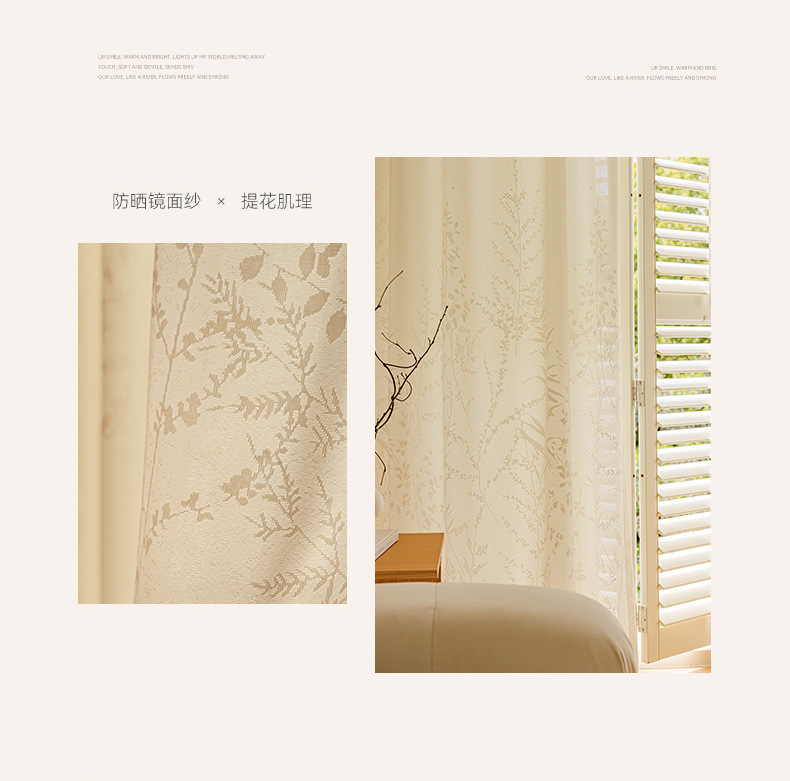 발코니 단열 거울 베일 커튼, 빛이 투과되지만 사람을 보이지 않는 프랑스식 커튼, 맞춤형 거실 베이 창, 크림 스타일, 쓰촨 코랴오스토어 가기