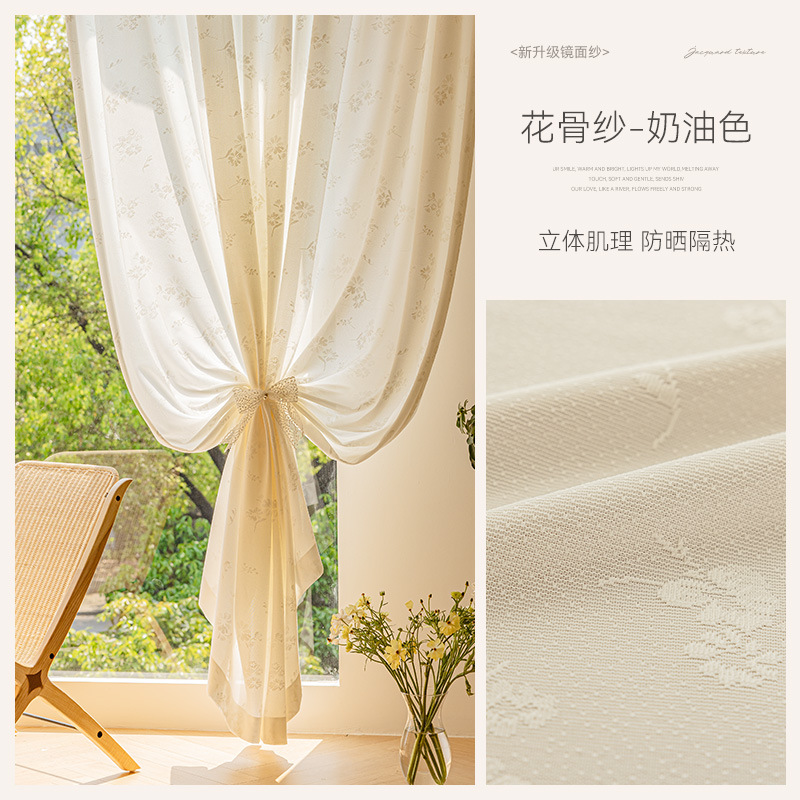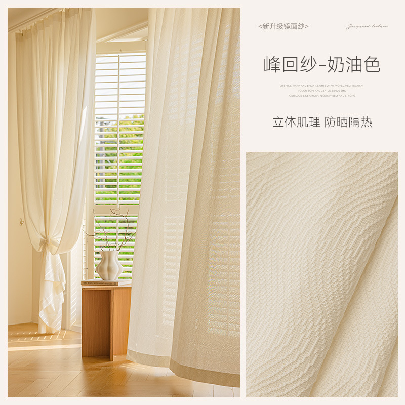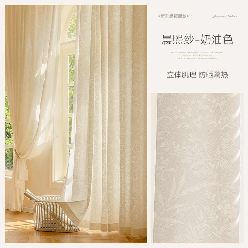 발코니 단열 거울 베일 커튼, 빛이 투과되지만 사람을 보이지 않는 프랑스식 커튼, 맞춤형 거실 베이 창, 크림 스타일, 쓰촨 코랴오