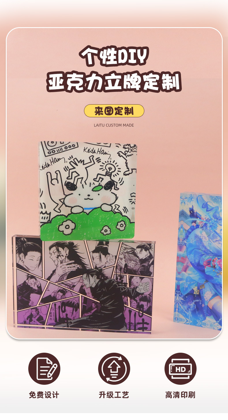 아크릴 브랜드 맞춤형 2 차원 만화 애니메이션 주변 다채로운 휴머노이드 크리스탈 벽돌 데스크탑 장식품 맞춤스토어 가기