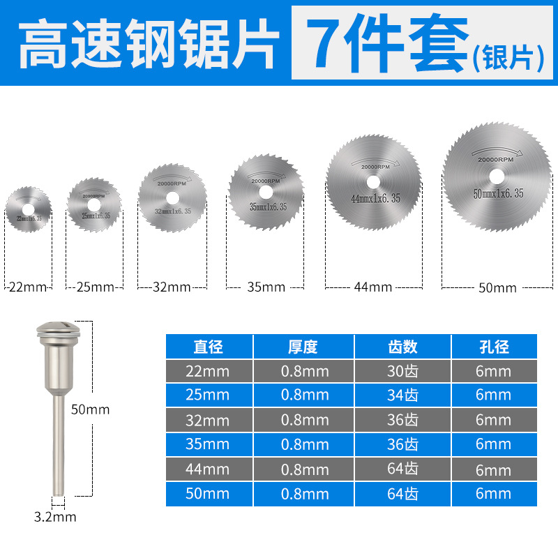 도매 고속 강철 세트 작은 톱날 전기 연삭 톱날 7 조각 세트 미니 나무 톱날 고속 강철 절단 블레이드 톱날스토어 가기