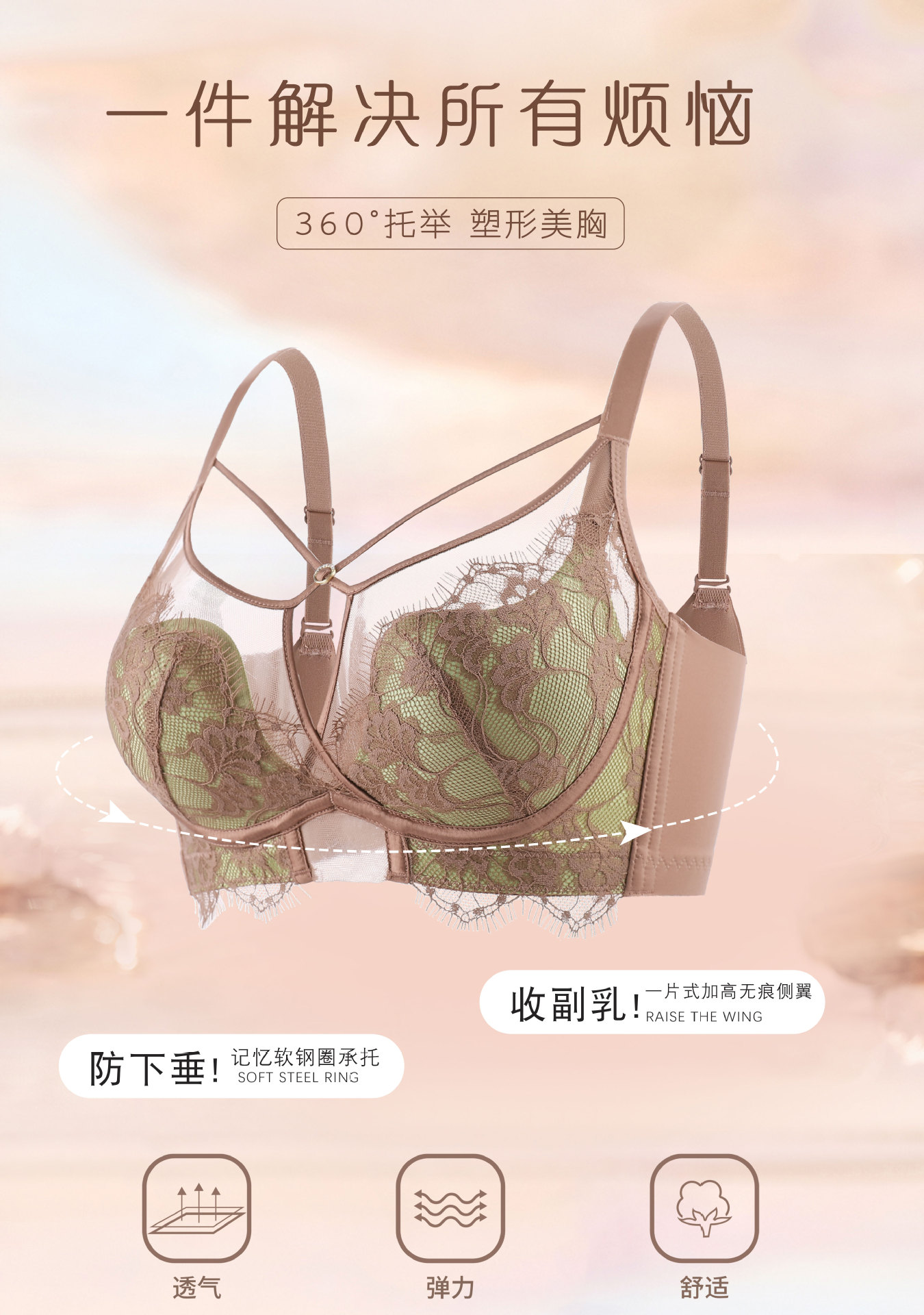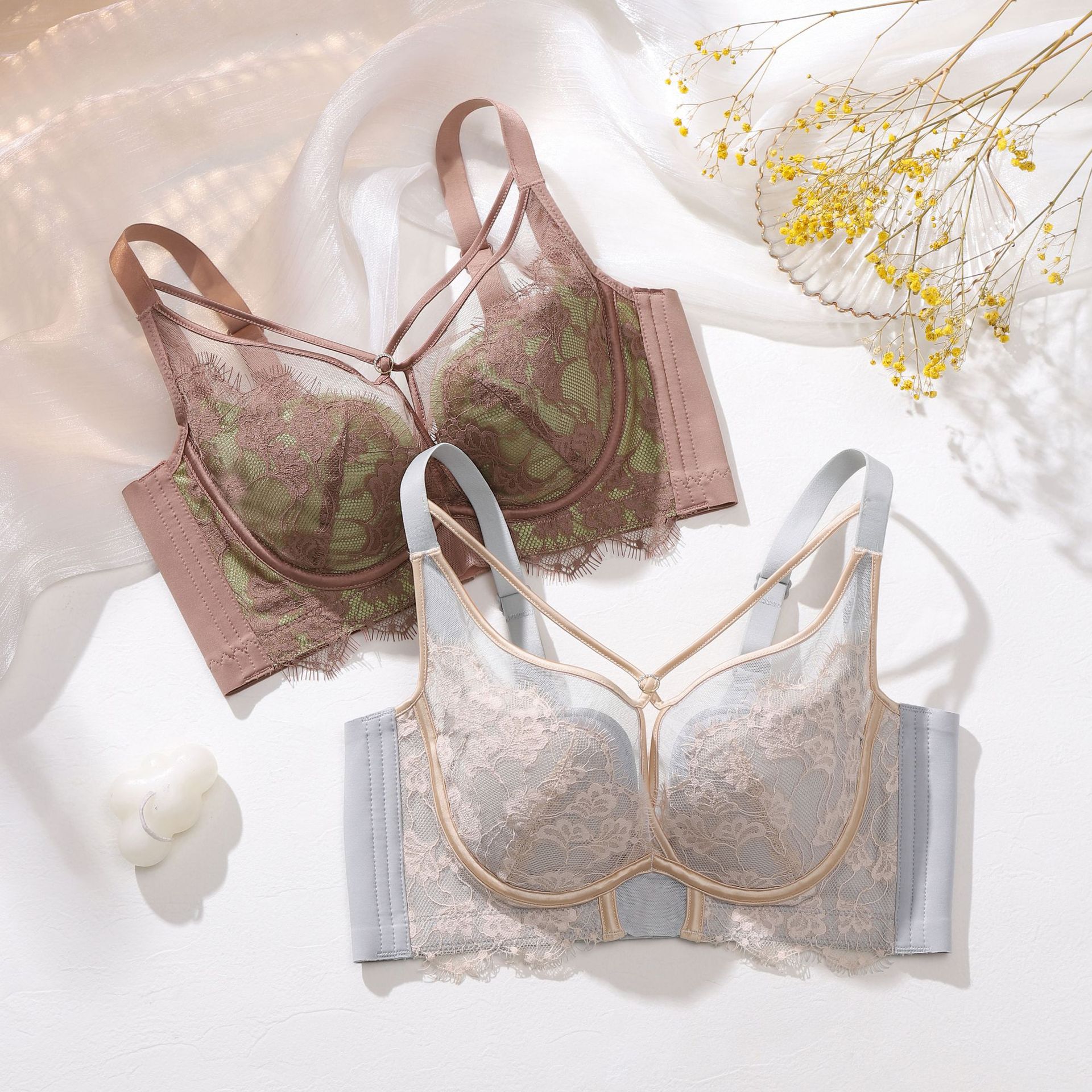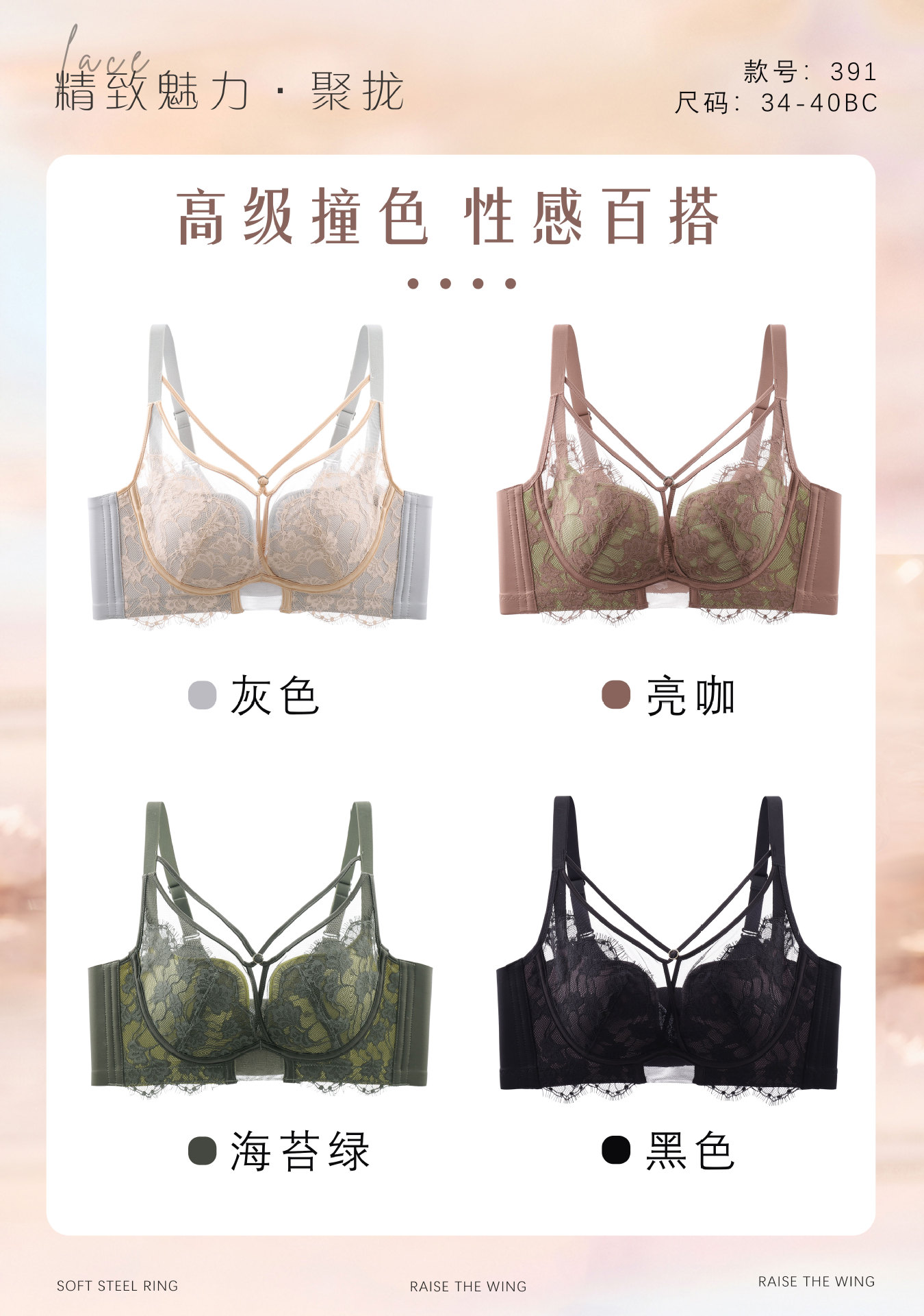 보르샹 391 프렌치 컬러 레이스 브라, 푸쉬업 조절형 얇은 소프트 와이어 브라, 옆가슴 보정 전문가