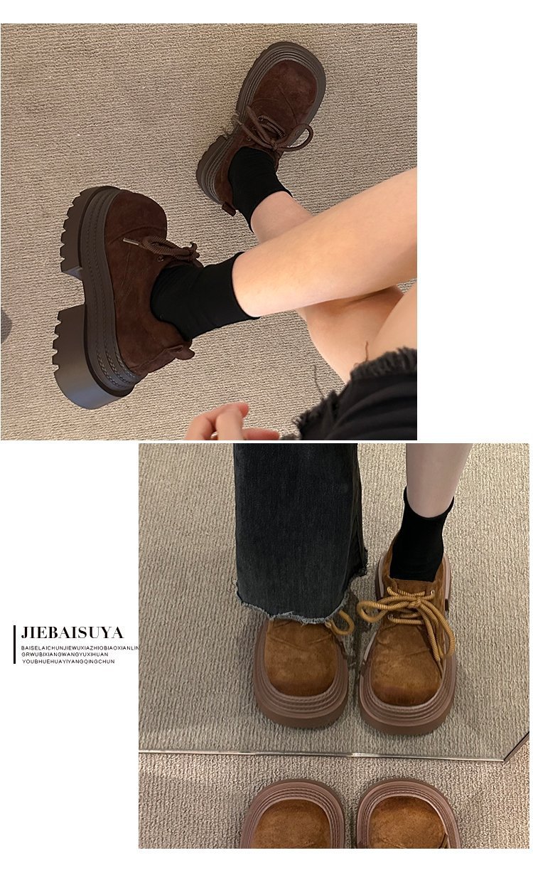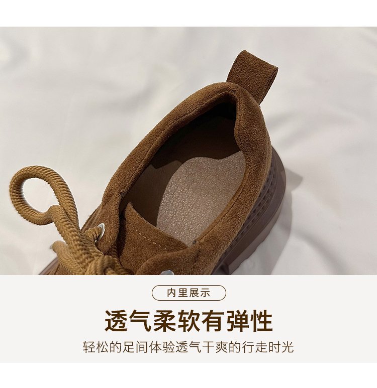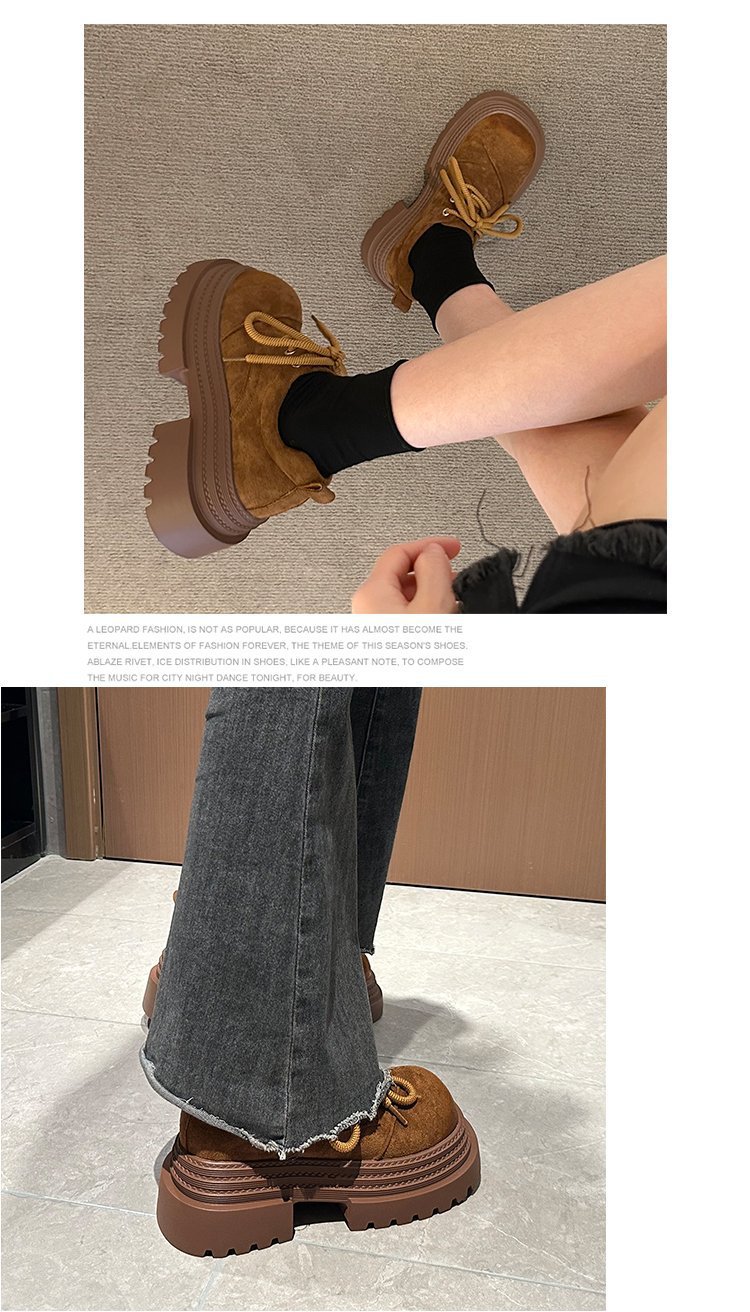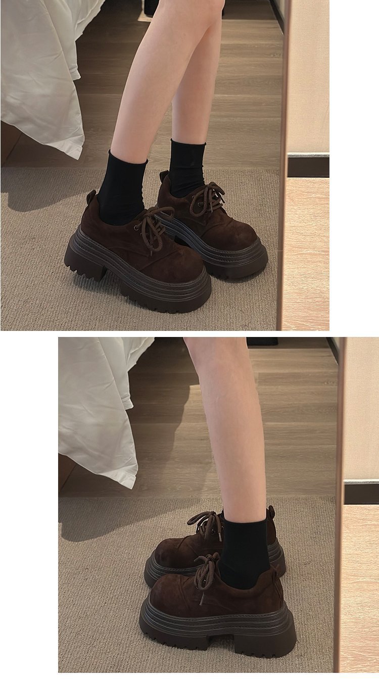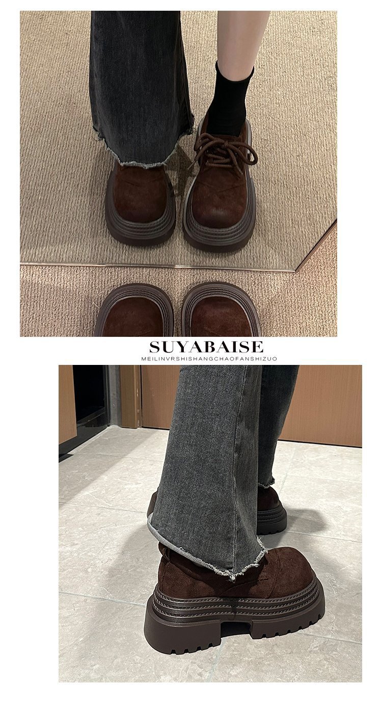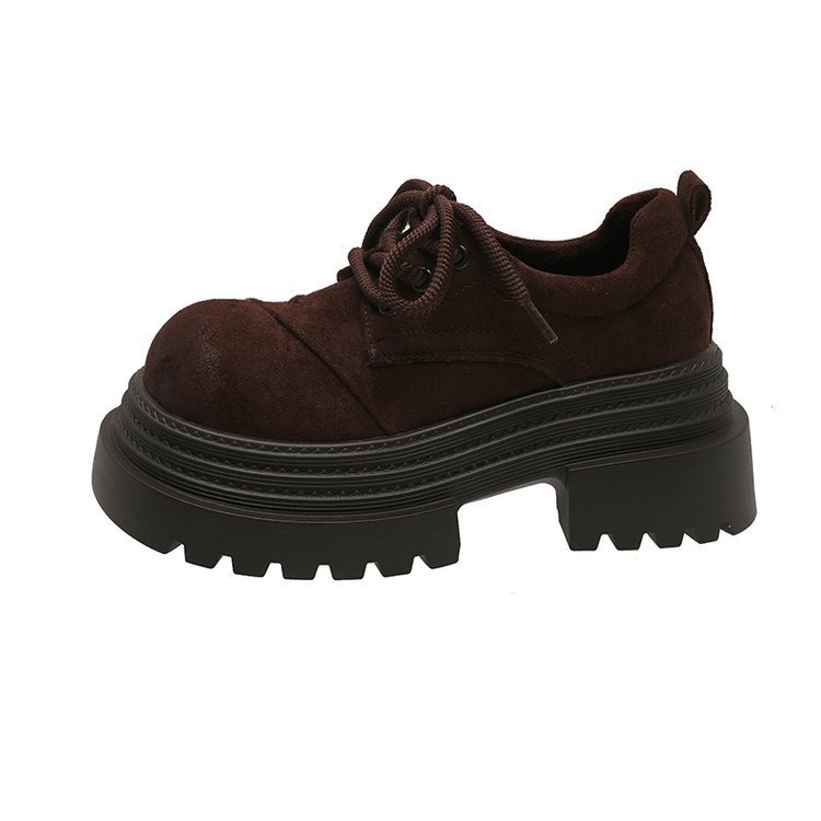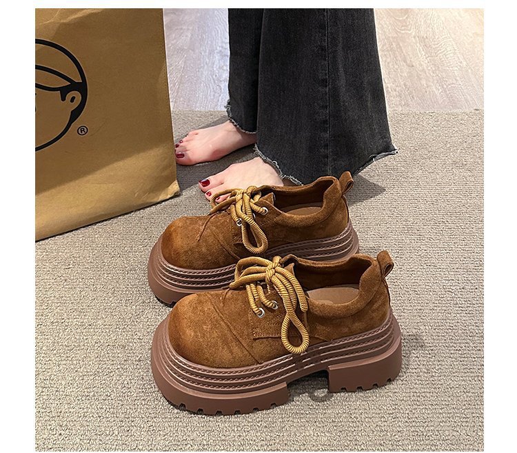 磨砂皮厚底增高乐福鞋女系带2024冬季新款复古大头鞋单里小皮鞋