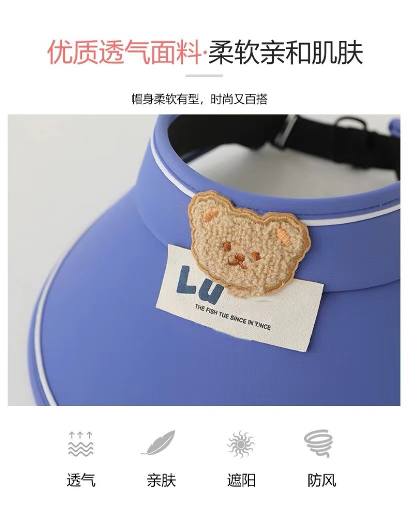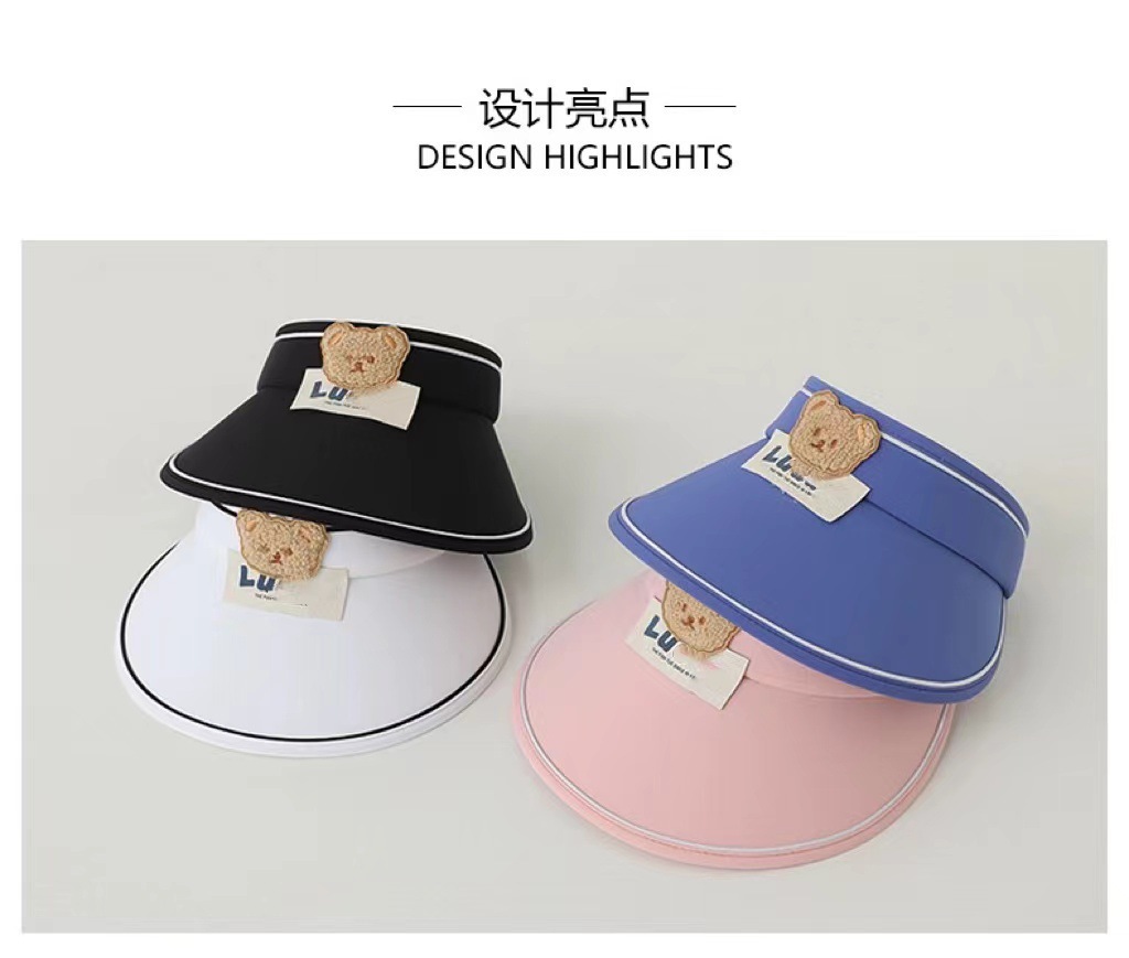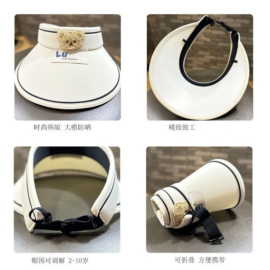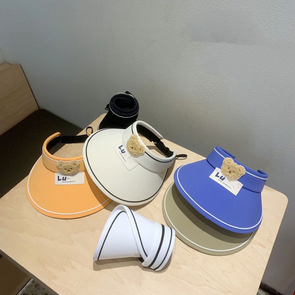 여름철 어린이 야외용 자외선 차단 모자, 놀이용 챙이 큰 귀여운 남녀 아기 곰돌이 모양의 챙 없는 햇빛 가리개 모자스토어 가기