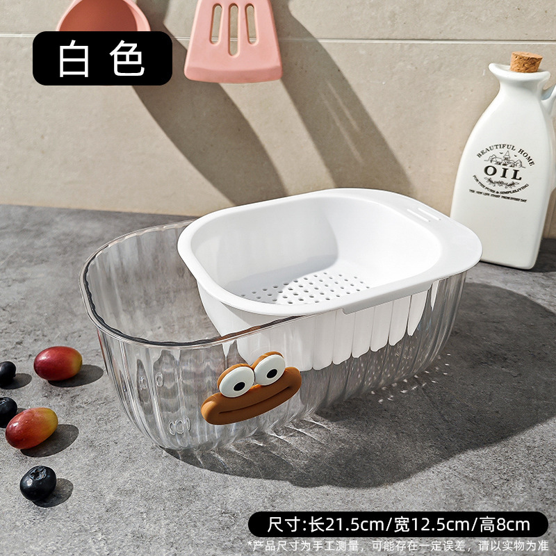 더블 레이어 배수 과일 상자 투명 높은 색상 값 두꺼운 필터 과일 트레이 별도의 과일 및 야채 세척 저장 바구니