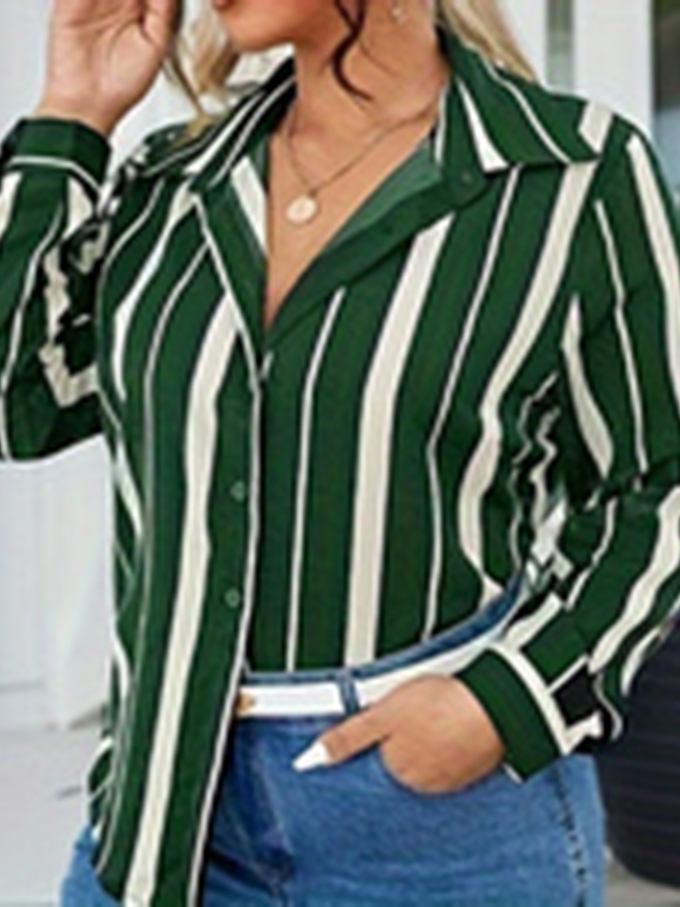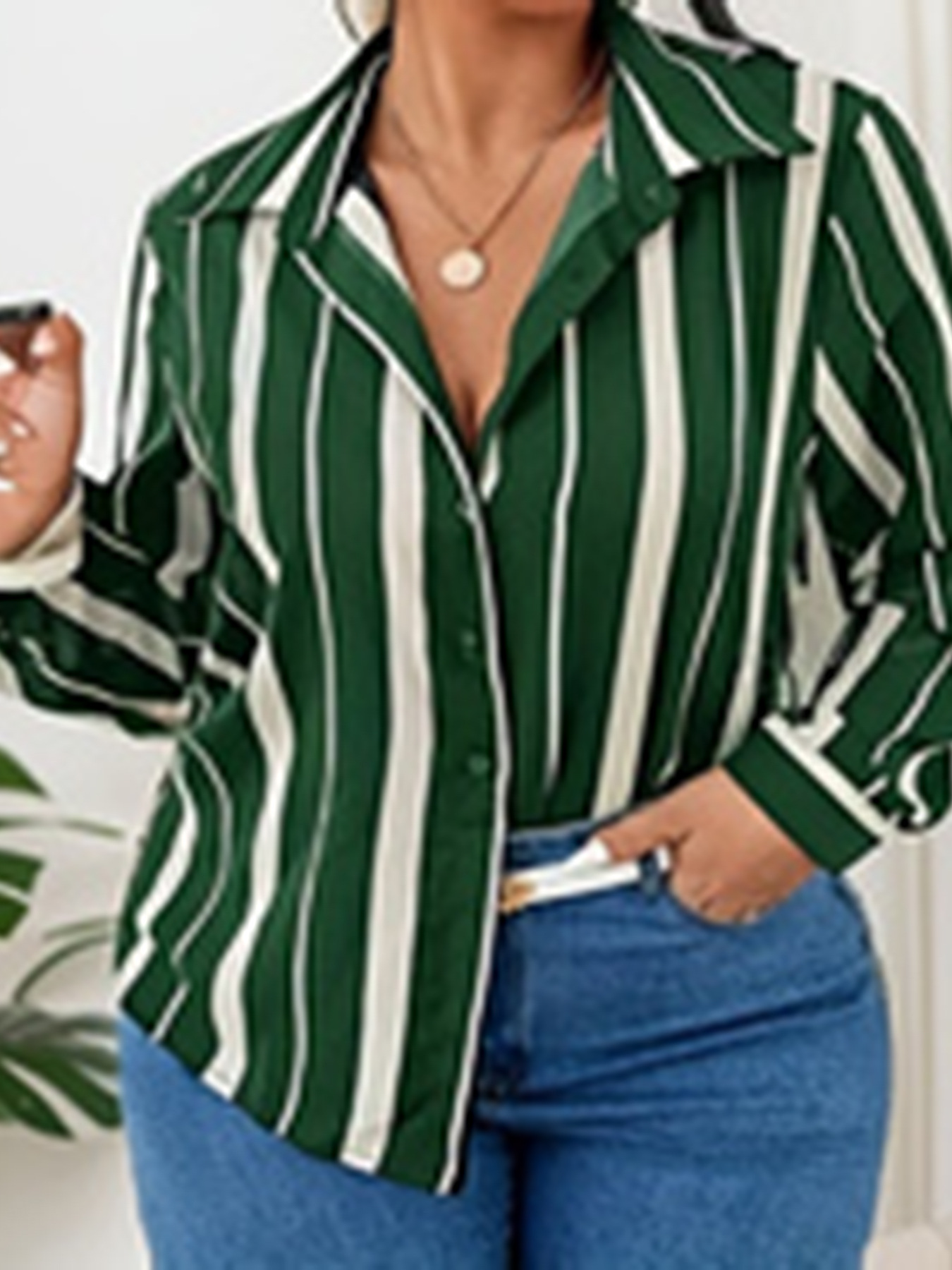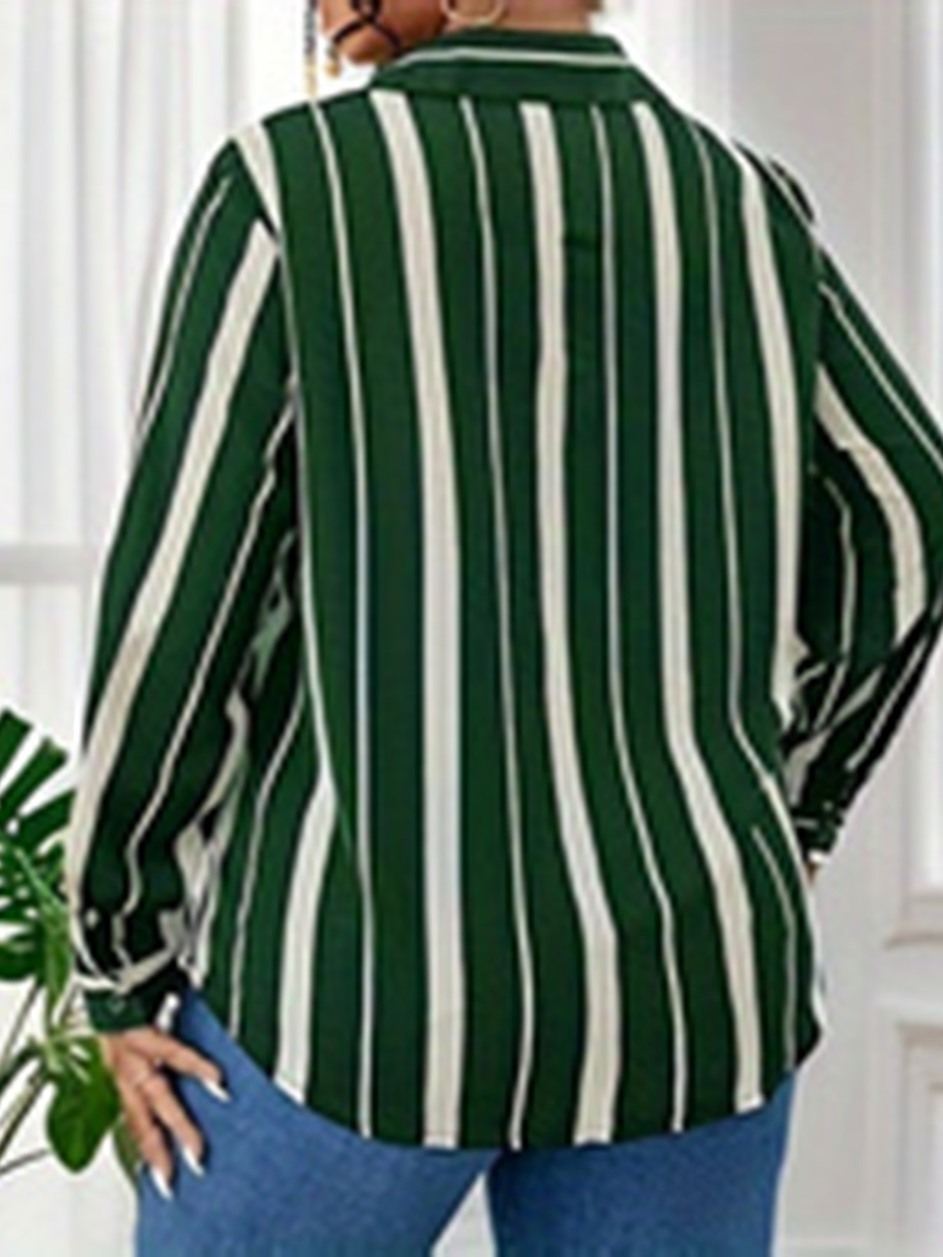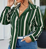 유럽과 미국의 플러스 사이즈 여자 2025 봄 새로운 V 넥 버튼 줄무늬 셔츠 긴 소매 블라우스스토어 가기