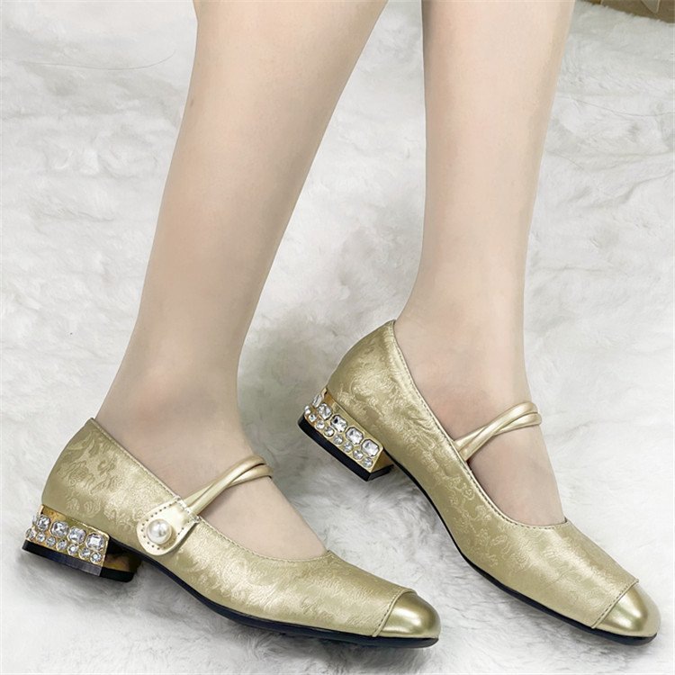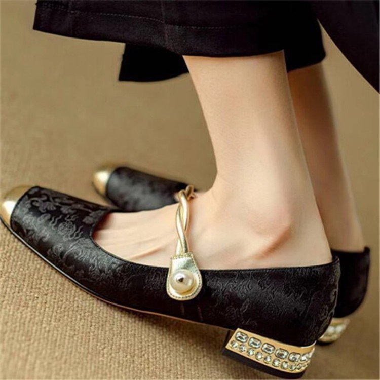 국가 스타일 새로운 중국 스타일 하이힐 여성 2025 봄 새로운 도착 빛 고급 부드러운 저녁 스타일 원피스 프랑스 스타일 두꺼운 힐 싱글 레이어 신발스토어 가기