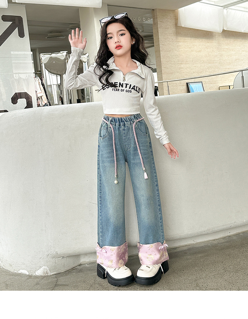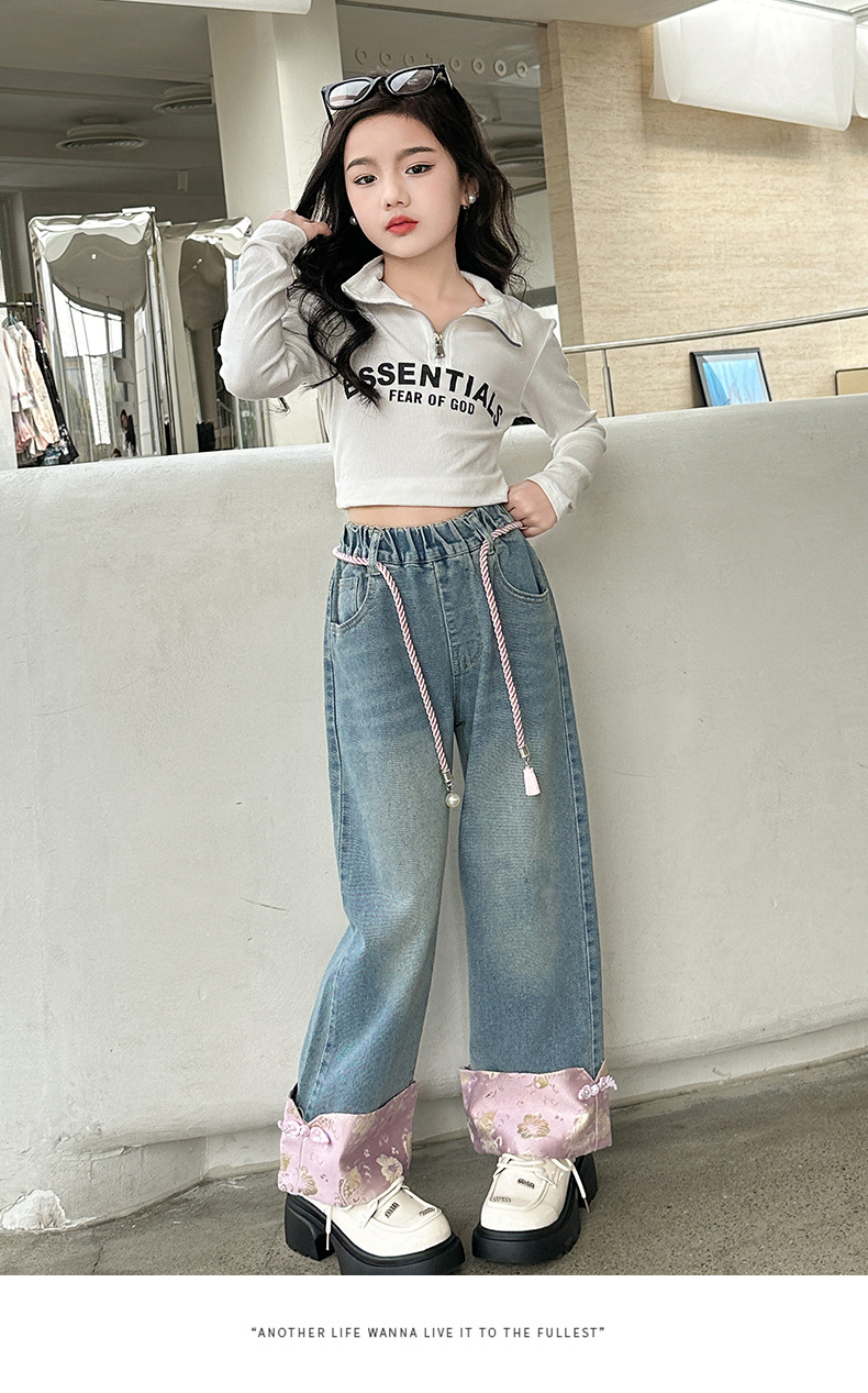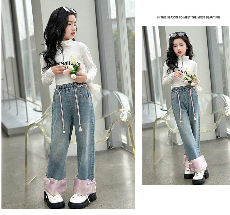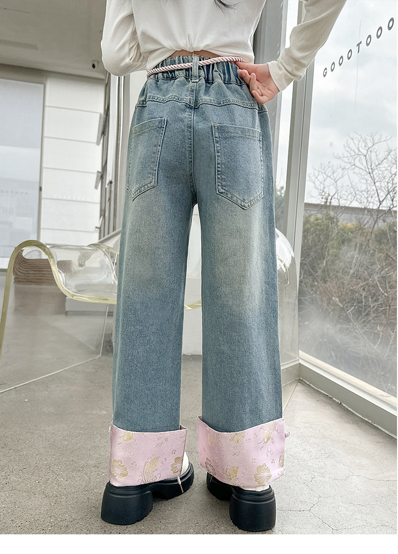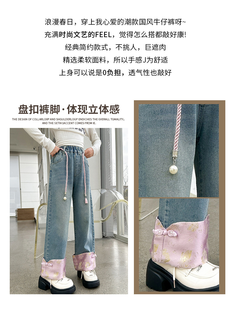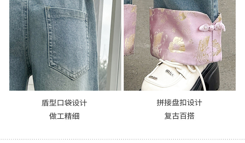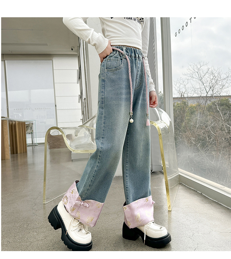 소녀 중국 스타일 탕 원피스 청바지 2025 봄과 가을 7 새로운 9 버클 중국 14 패션 웨스턴 스타일 스트레이트 바지