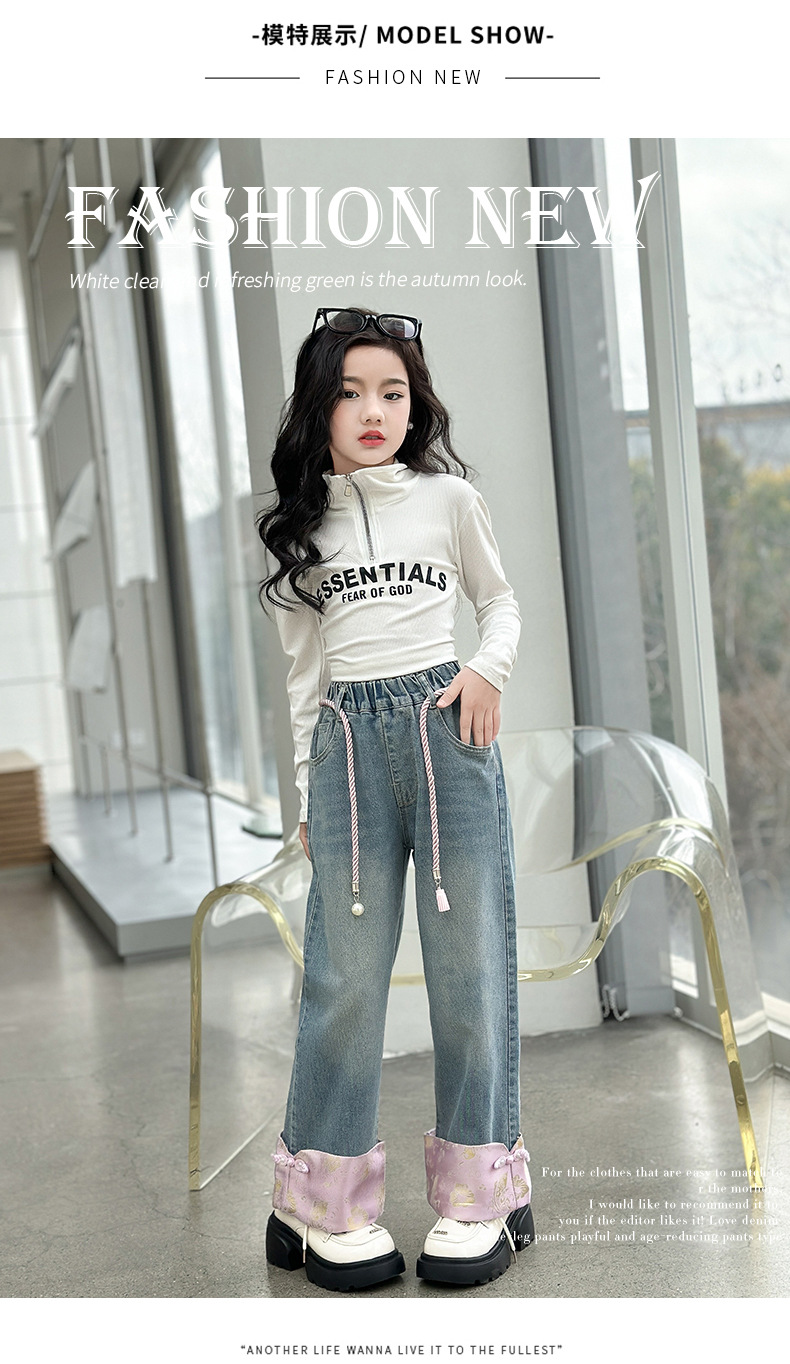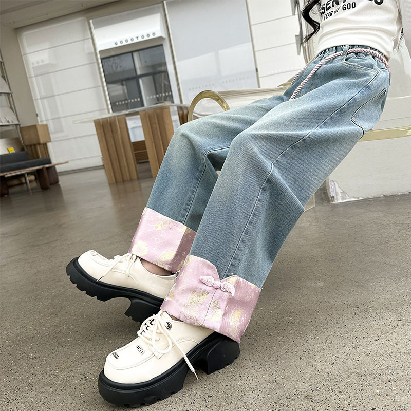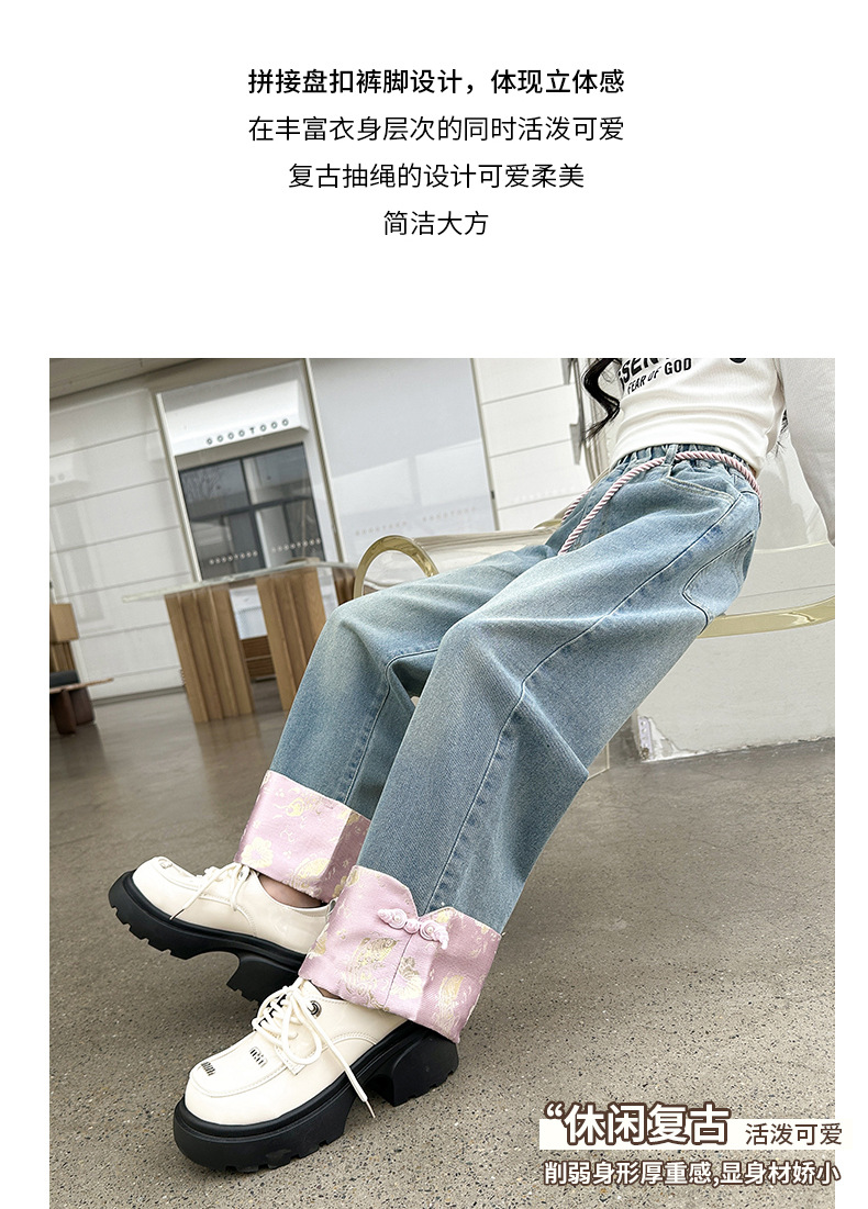 소녀 중국 스타일 탕 원피스 청바지 2025 봄과 가을 7 새로운 9 버클 중국 14 패션 웨스턴 스타일 스트레이트 바지스토어 가기