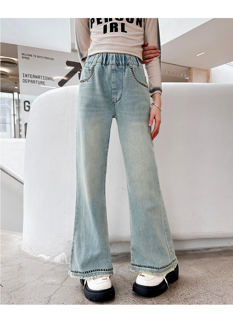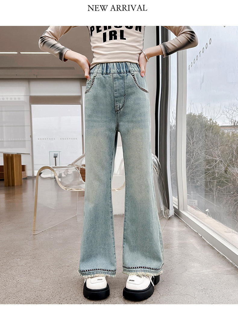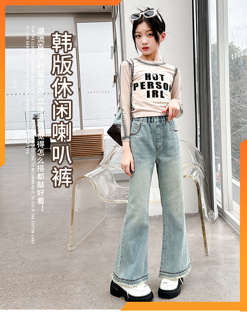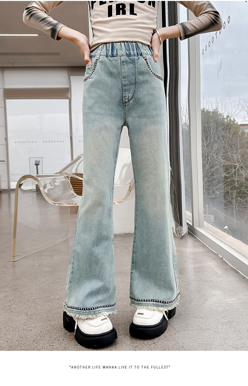 소녀 데님 꽃 바지 봄과 가을 2025 새로운 대형 어린이 느슨한 바지 어린이 슬림핏 자수 바지스토어 가기