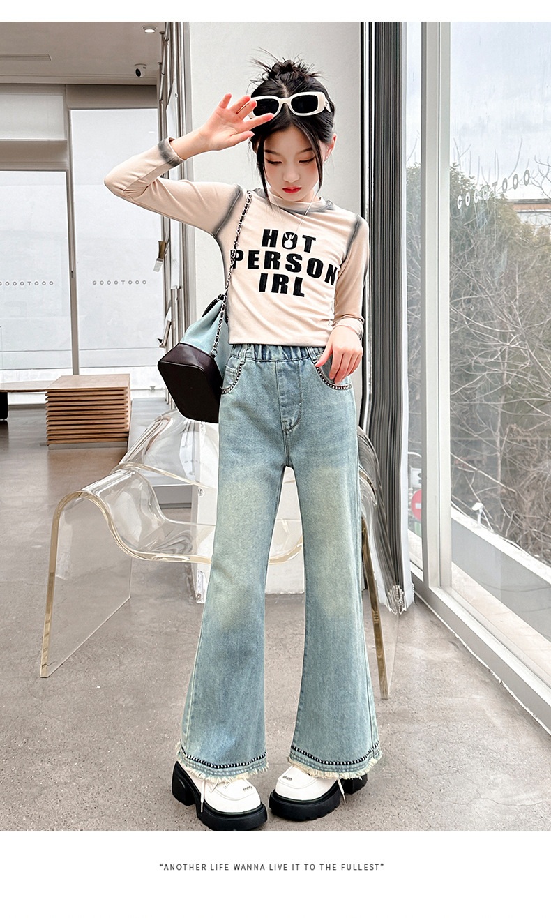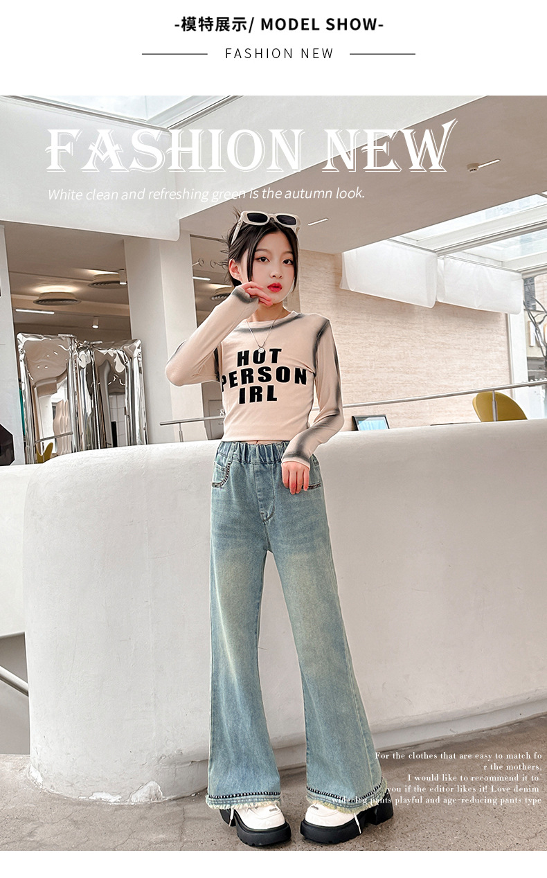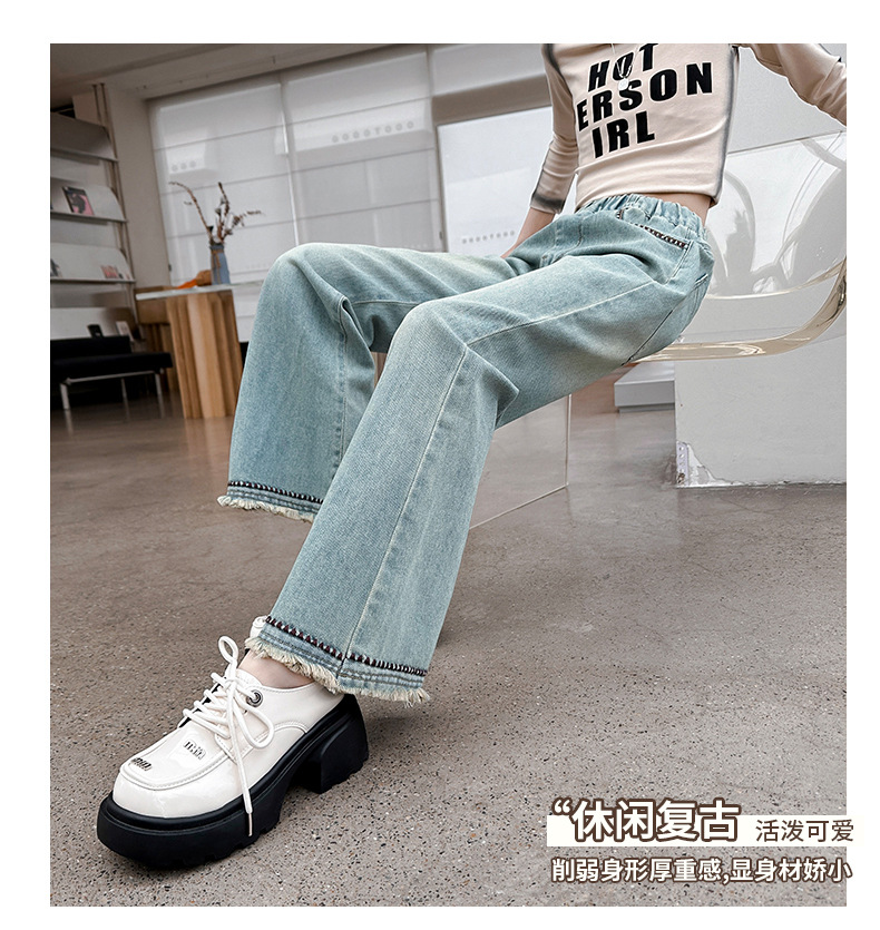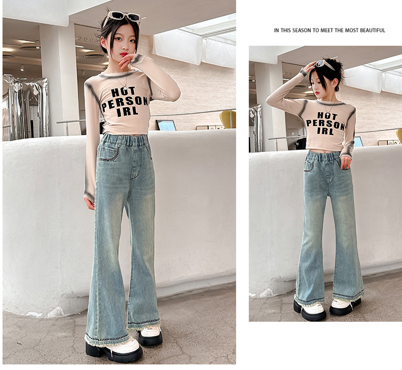 소녀 데님 꽃 바지 봄과 가을 2025 새로운 대형 어린이 느슨한 바지 어린이 슬림핏 자수 바지스토어 가기