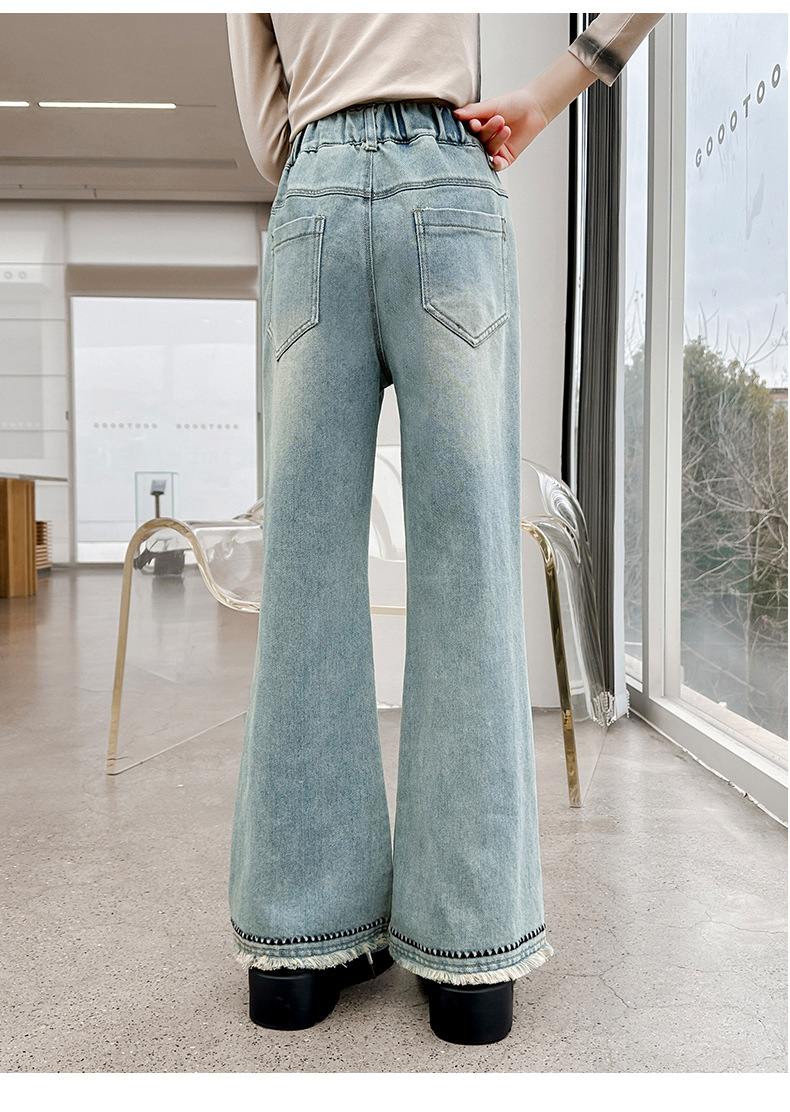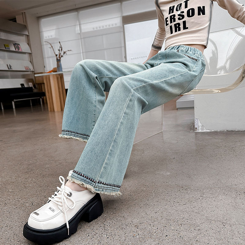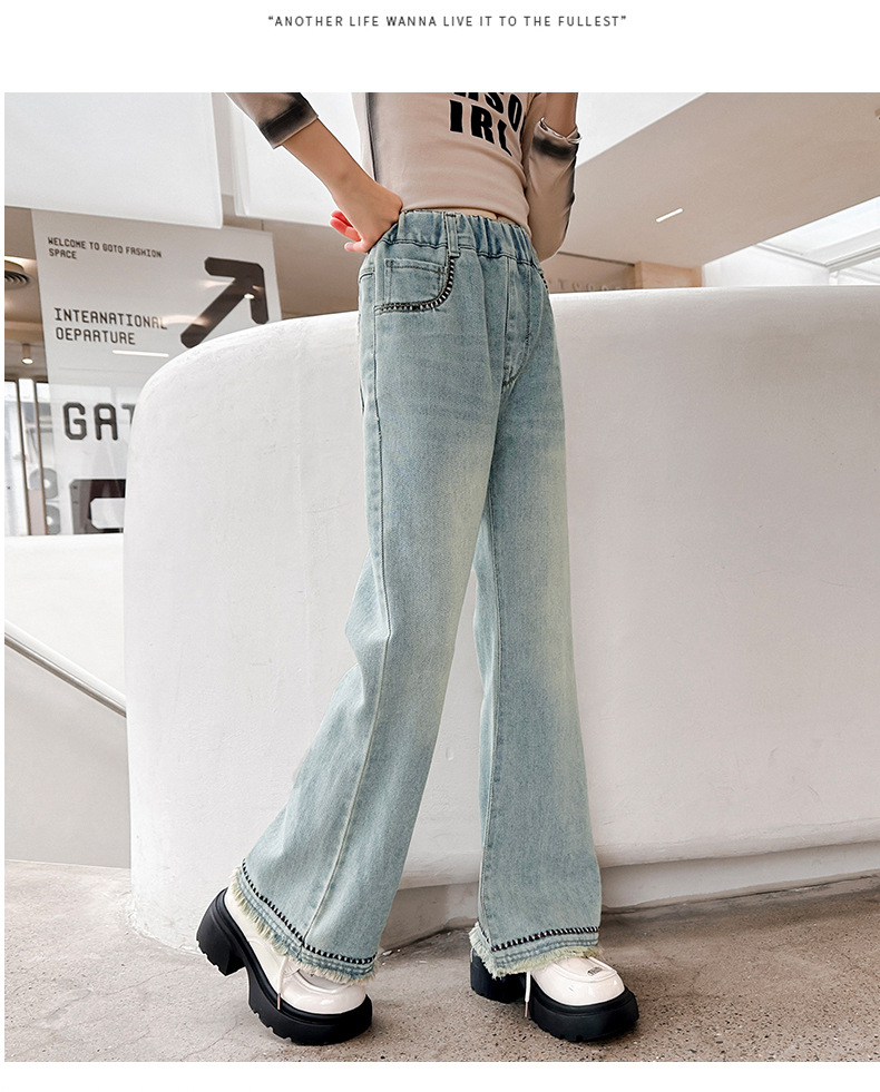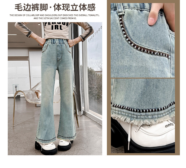 소녀 데님 꽃 바지 봄과 가을 2025 새로운 대형 어린이 느슨한 바지 어린이 슬림핏 자수 바지