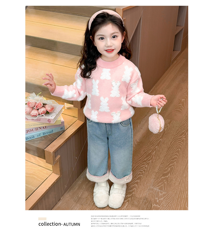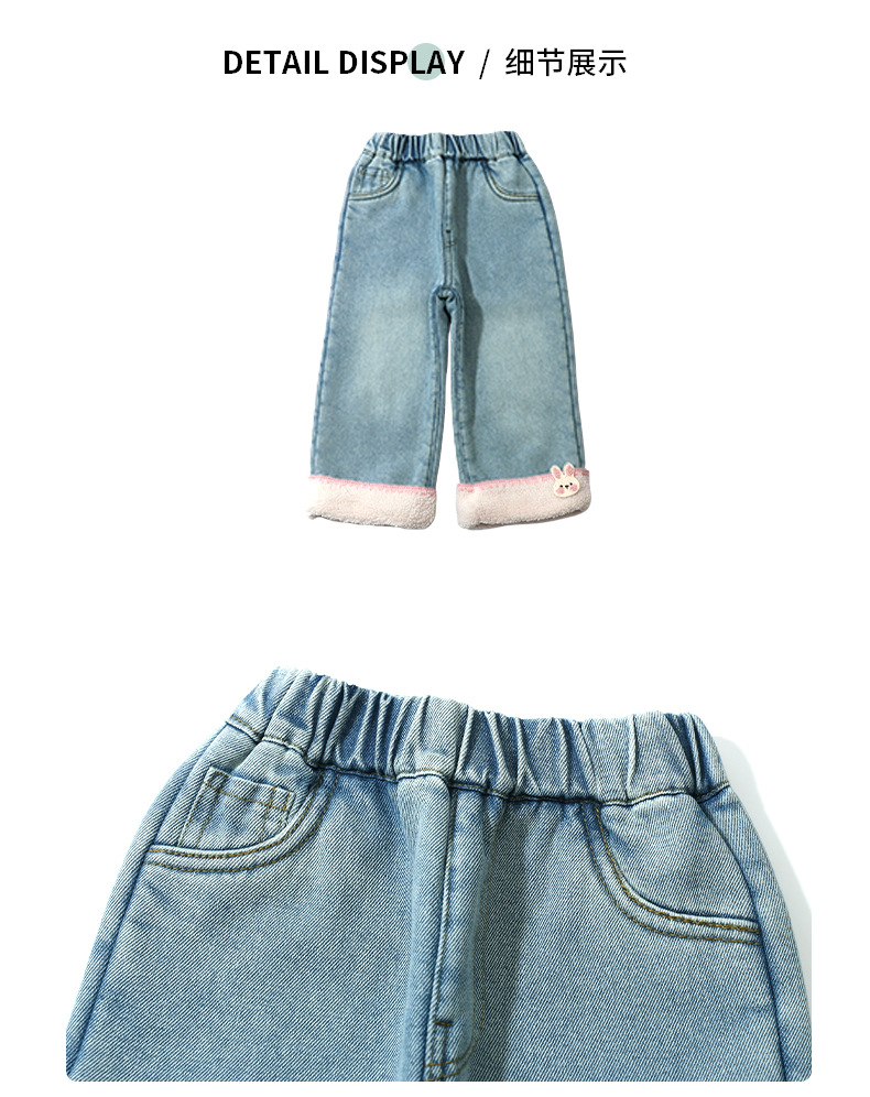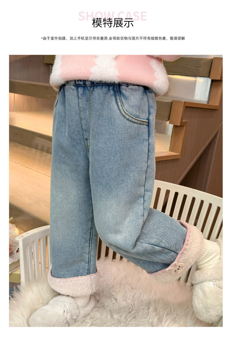 아동복 여아용 두꺼운 벨벳 데님 팬츠 가을 겨울 2024 어린 소녀 캐주얼 스트레이트 팬츠 두꺼운 보온성스토어 가기
