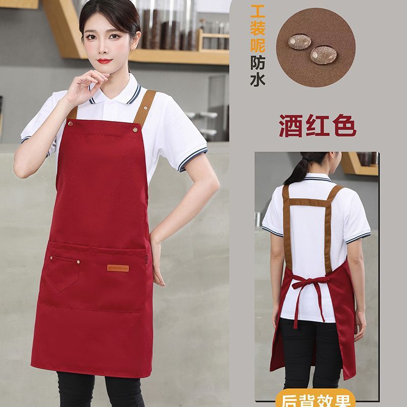 광고 앞치마 맞춤 로고 방수 pvc 케이터링 호텔 우유 차 베이킹 커피 숍 웨이터 앞치마 도매스토어 가기