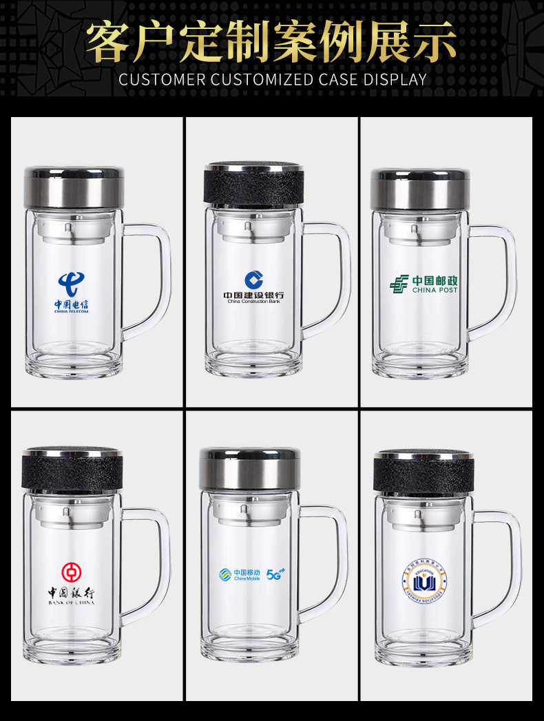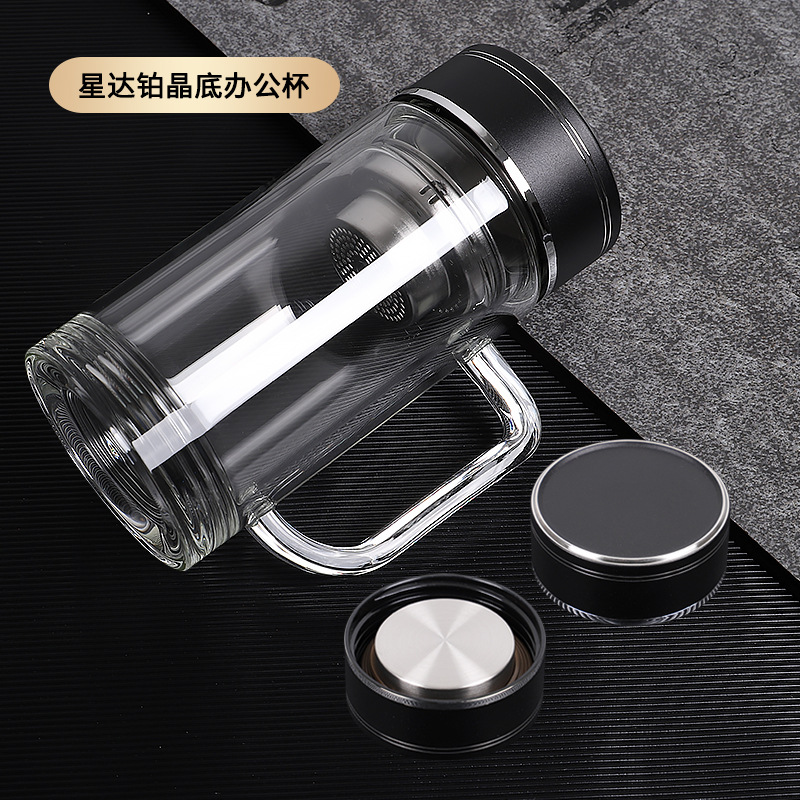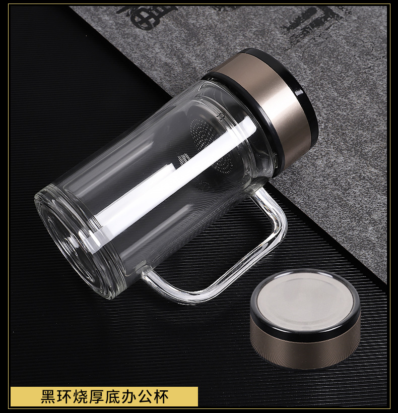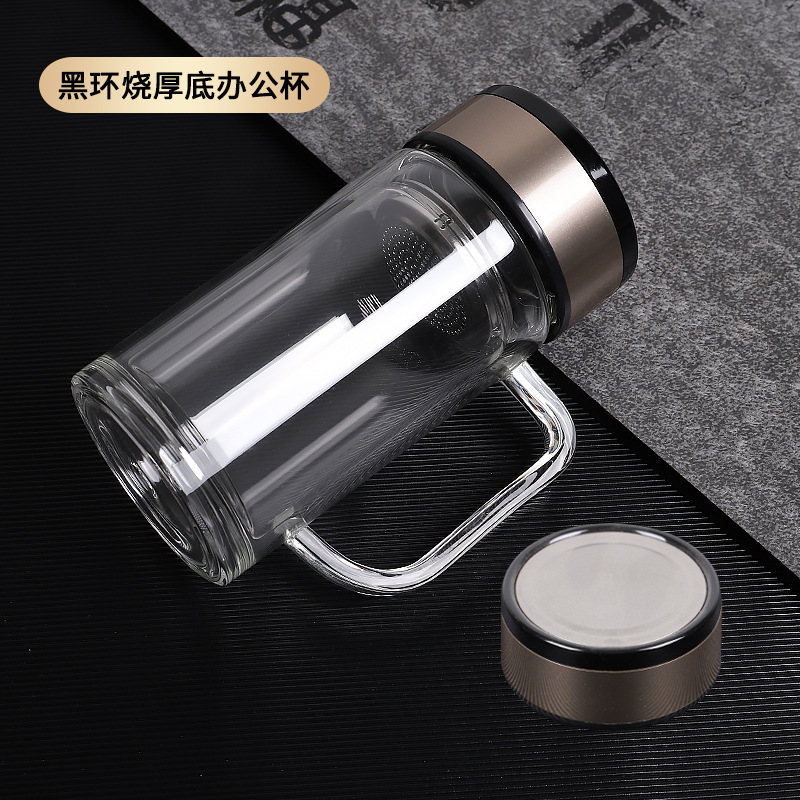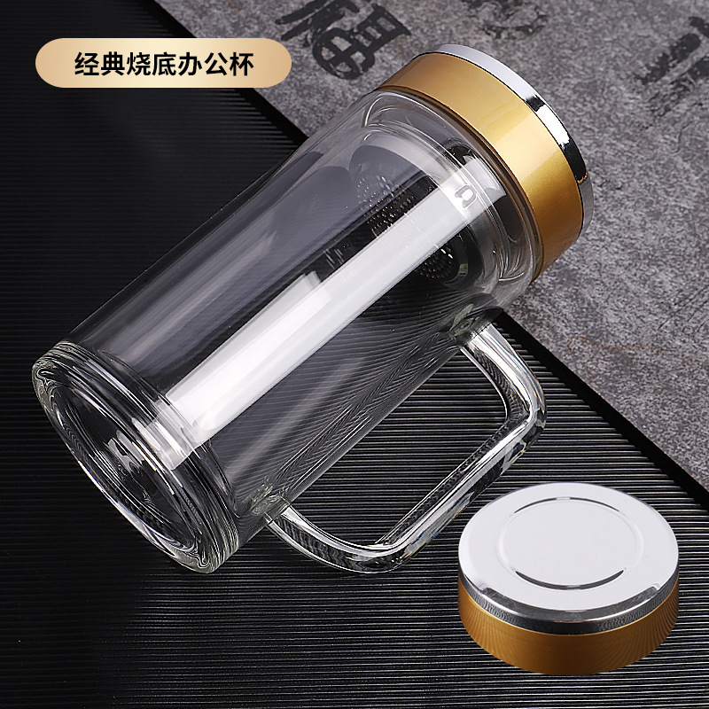 도매 사무실 컵 핸들 높은 borosilicate 고온 저항 차 컵 더블 유리 컵 맞춤형 로고 인쇄스토어 가기
