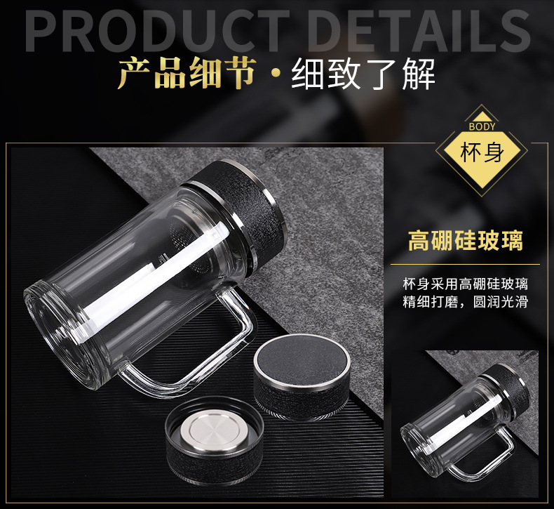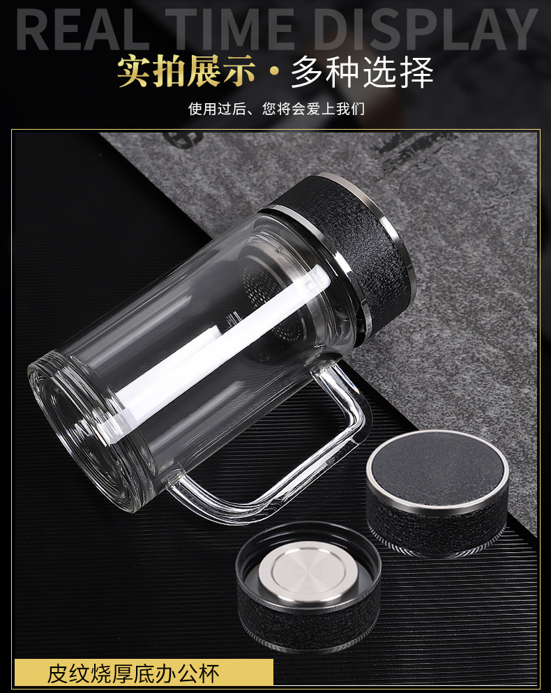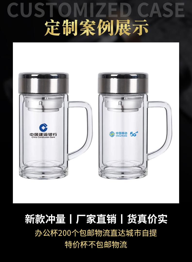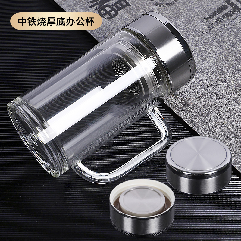 도매 사무실 컵 핸들 높은 borosilicate 고온 저항 차 컵 더블 유리 컵 맞춤형 로고 인쇄스토어 가기