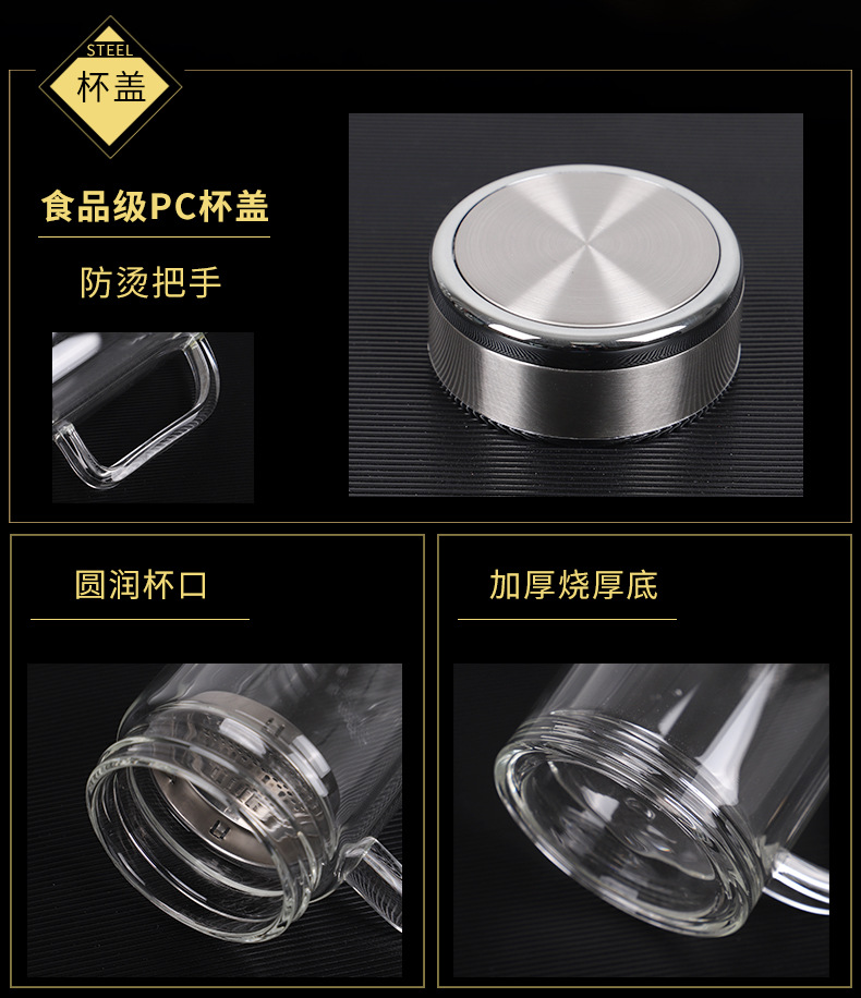 • 은색 강철 뚜껑이 있는 두꺼운 바닥 사무용 컵